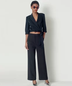 MARYLING Midnight Blue Velvet High Waist Straight Slim Trousers BLUE | Womens Pants & Shorts