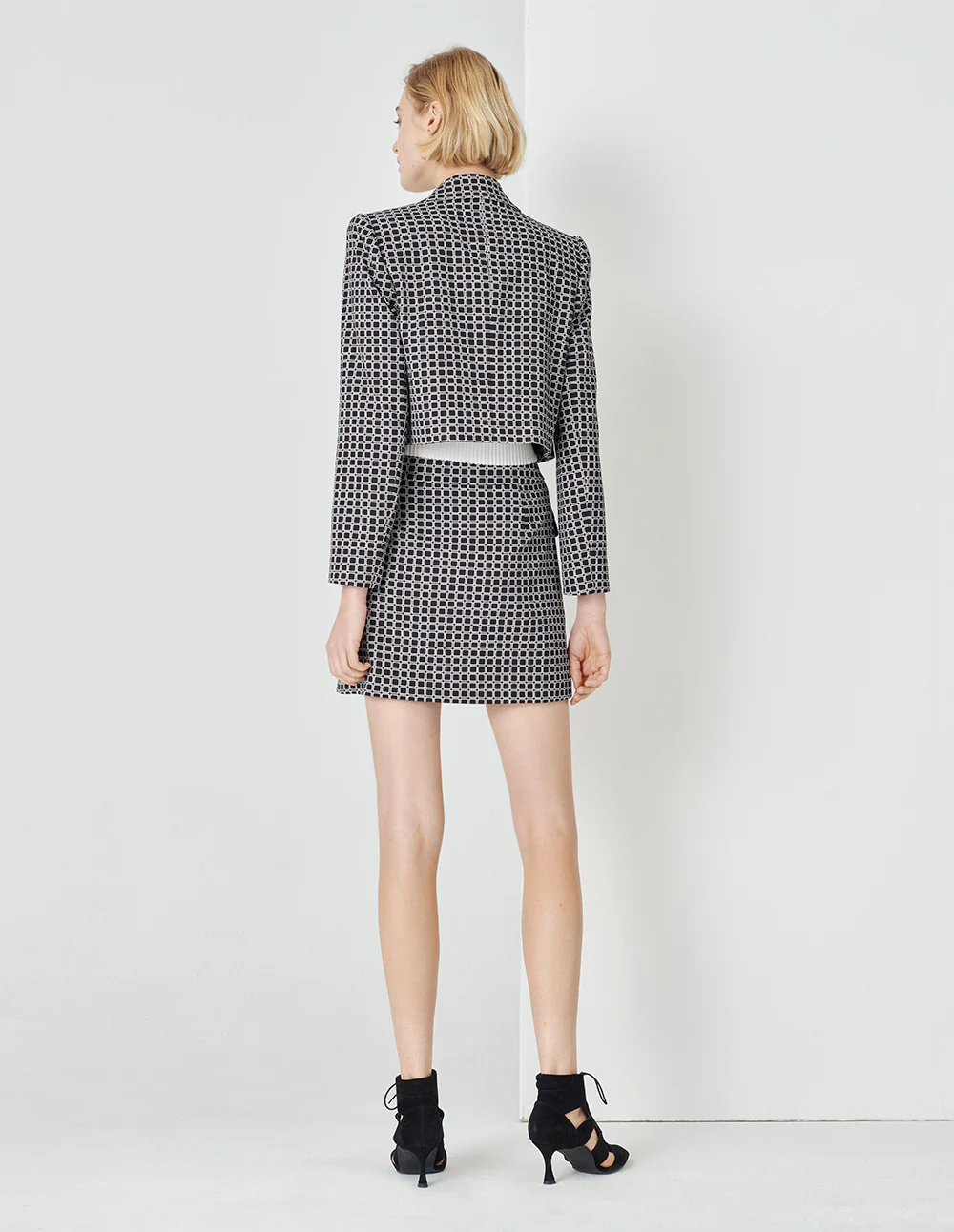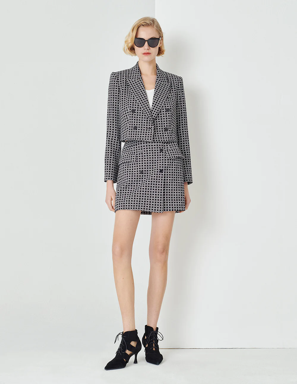 MARYLINGtieredminiskirthasanirregularfronthemandisfinishedwithbuttonsandblackandwhitechecksforaneye-catchingeffect.Wearitwiththematchingjacketforeasystyle.FitTruetosize,chooseyournormalsizeCompositionPolyesterfibrehashighstrengthandelasticity,isdurable,wrinkle-resistant,requiresnoironing,andhasgoodlightcolourfastnessWashingmethodDonotwaterwashingDonotbleachHangingtodryThemaximumtemperatureofironbottomplateis110¡æRegulardrycleaning