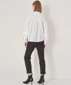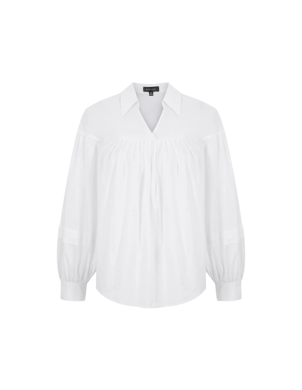 MARYLING’swhiteblousehasalivelyandsweetA-shapedhemformedbythehorizontaldivisionandruchingofthefrontchest.Thelargedouble-folddesignofthesleevesaddsasenseofindividuality,andtheshirtcollarisdesignedwithaV-neck,forapurewhiteclassiclook.FitTruetosize,chooseyournormalsizeComposition100%CottonWashingmethodHandwashMaxwashingtemperature40¡æDonotbleachHangingtodryIronsoleplatemaximumtemperature110¡æRegulardrycleaningSeparatewaterwashing