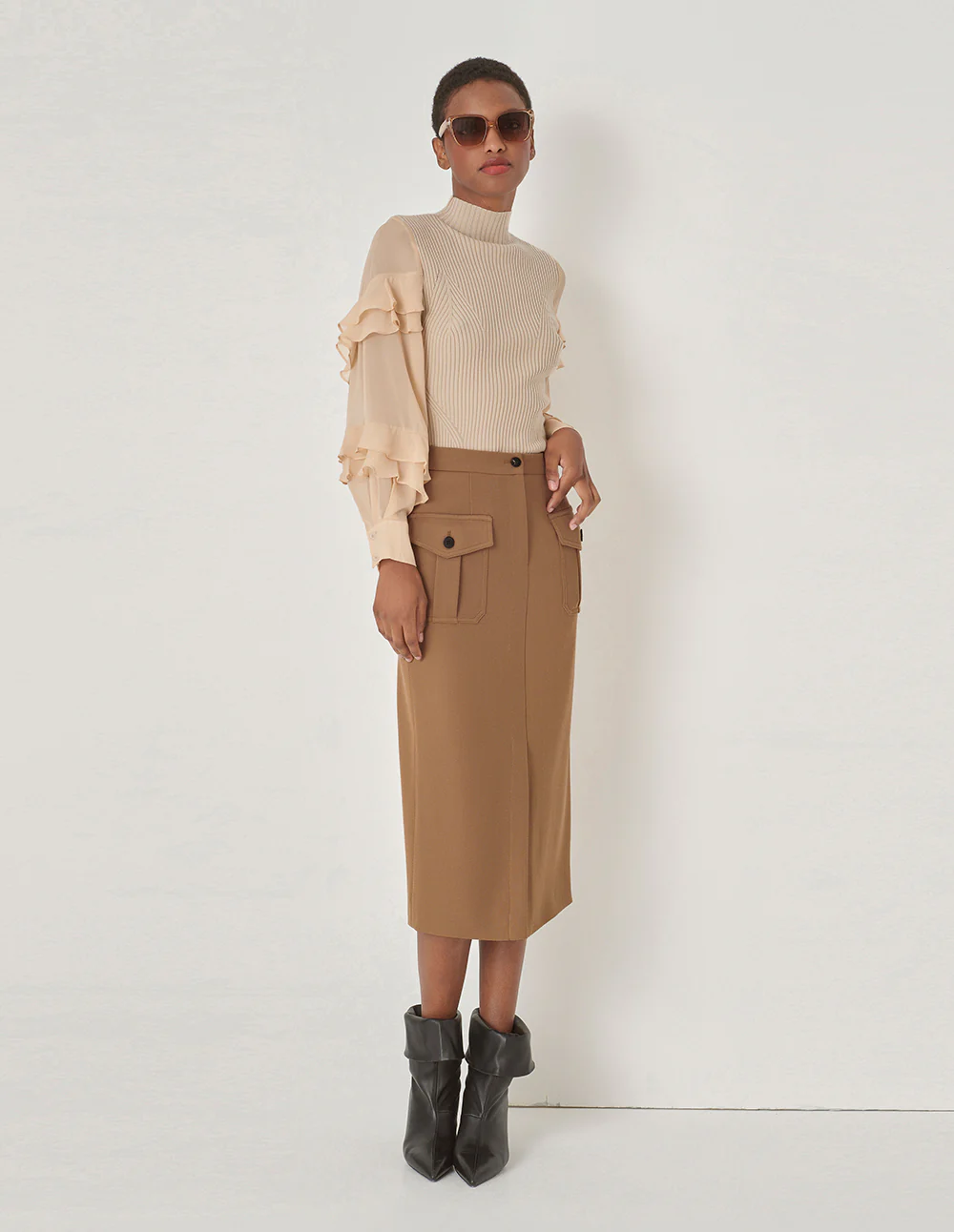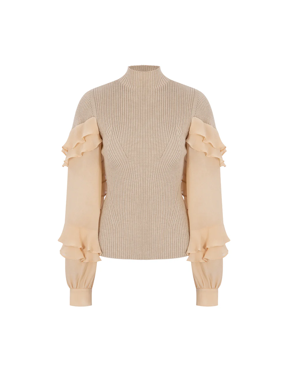 Be the first to review “MARYLING Apricot Ruffle Knit Woven Top CAMEL | Womens knitwear” Cancel reply