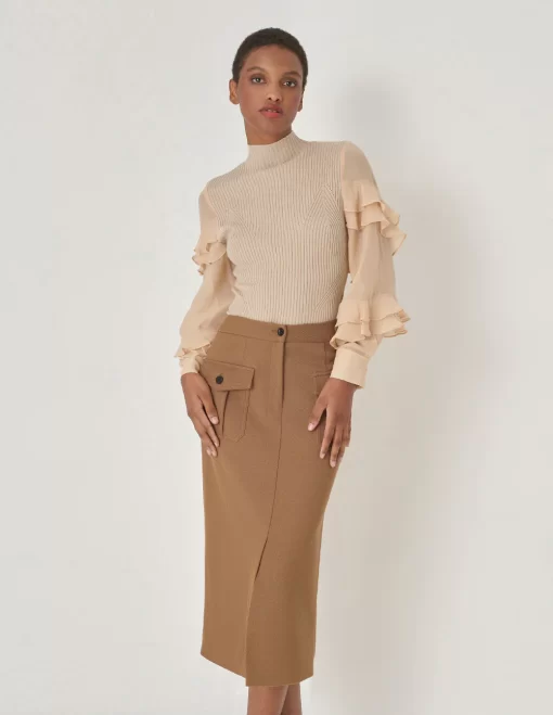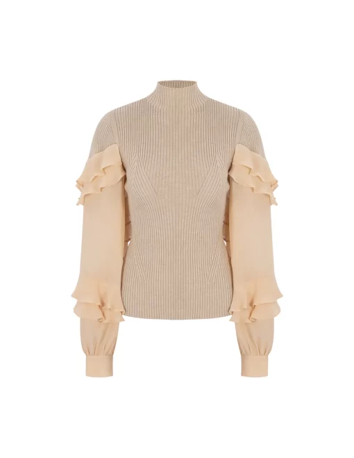 Be the first to review “MARYLING Apricot Ruffle Knit Woven Top CAMEL | Womens knitwear” Cancel reply