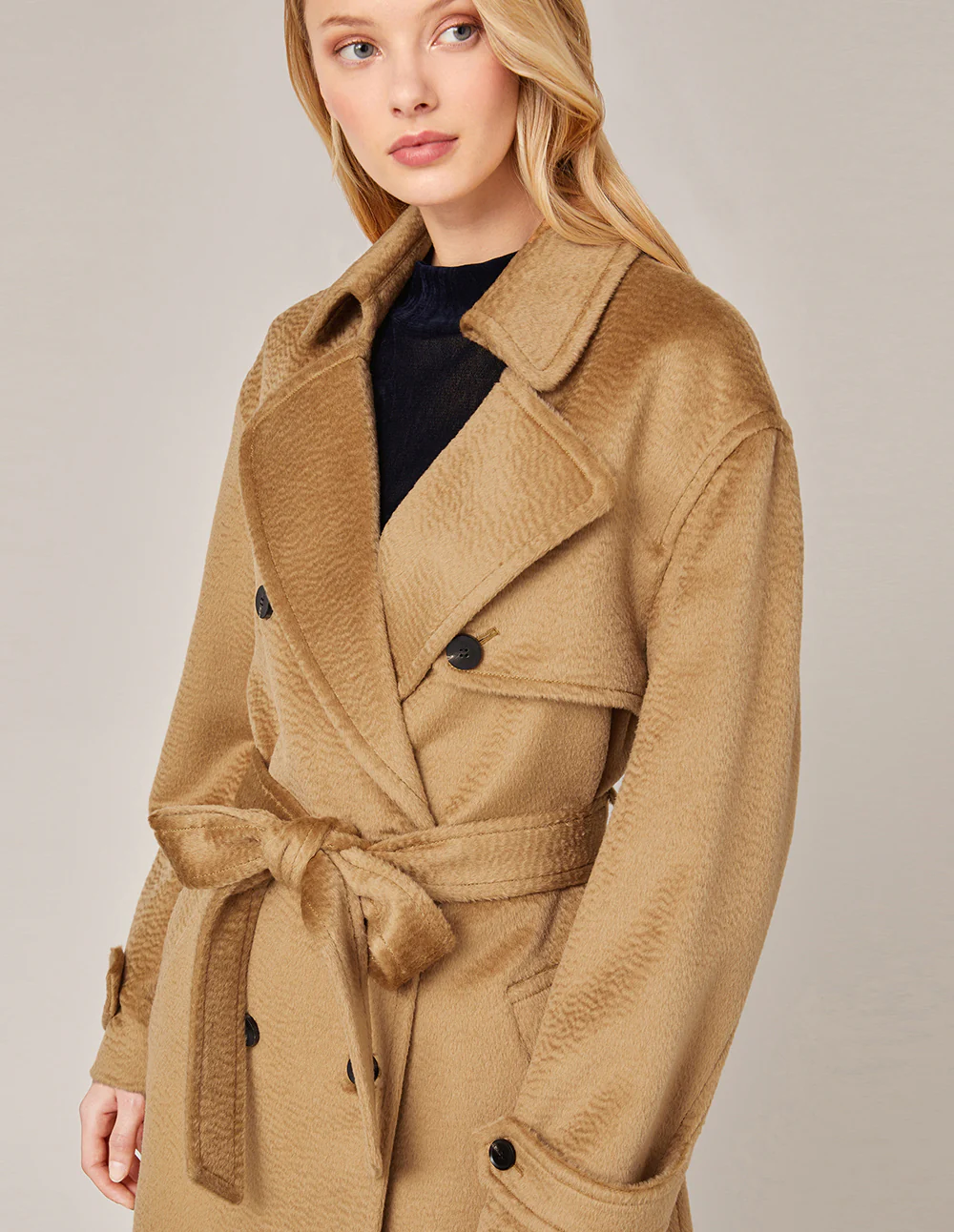 MARYLING BEIGE WOOL SELF BELTED COAT KHAKI | Womens JACKET & COAT
