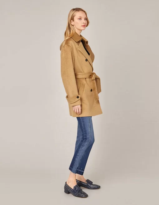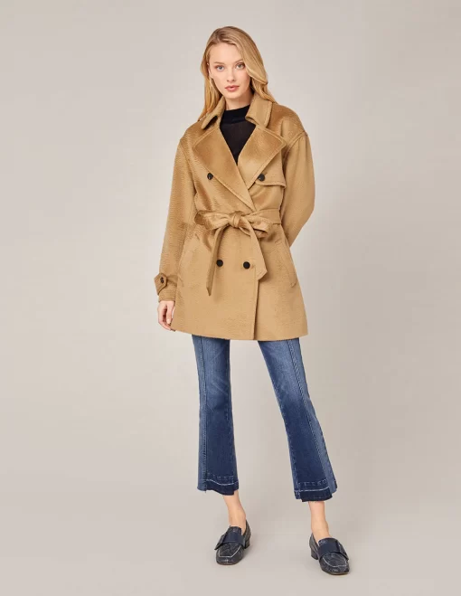 MARYLING BEIGE WOOL SELF BELTED COAT KHAKI | Womens JACKET & COAT