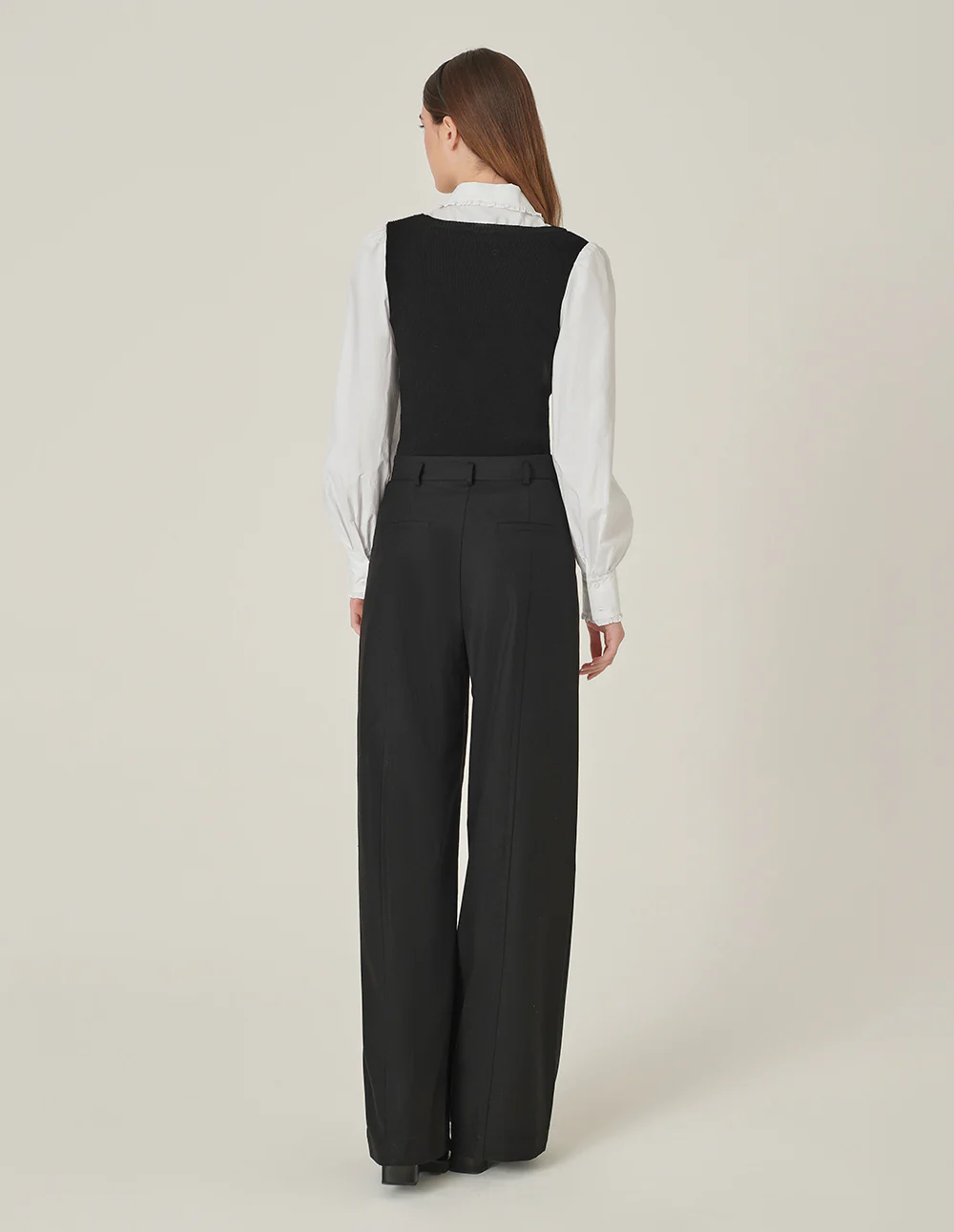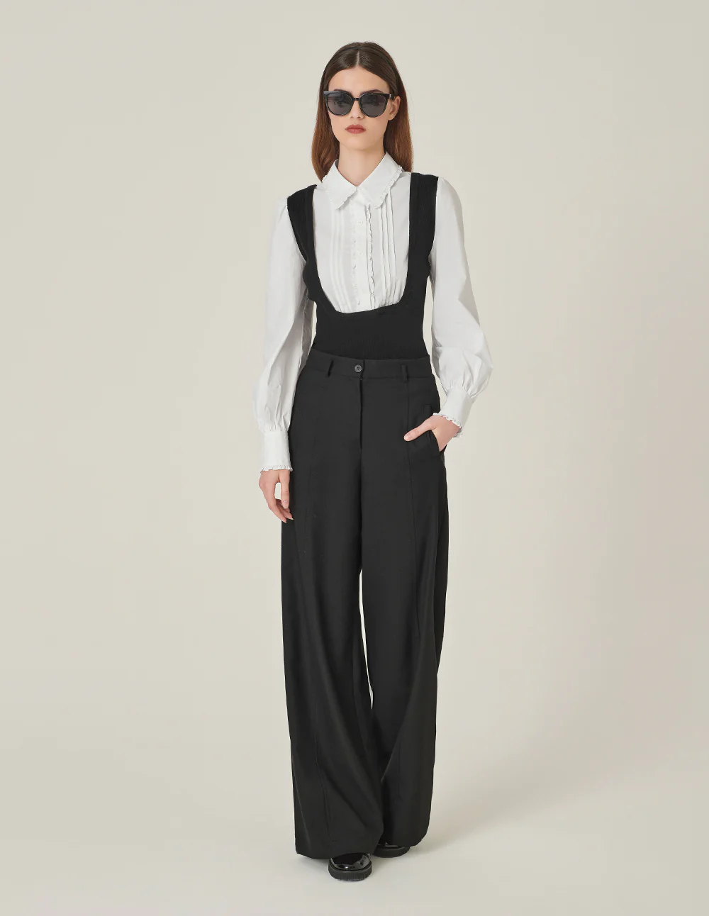 MARYLING Black Double-Sided Woolen Eight-Quarter Wide-Leg Pants BLACK | Womens Pants & Shorts