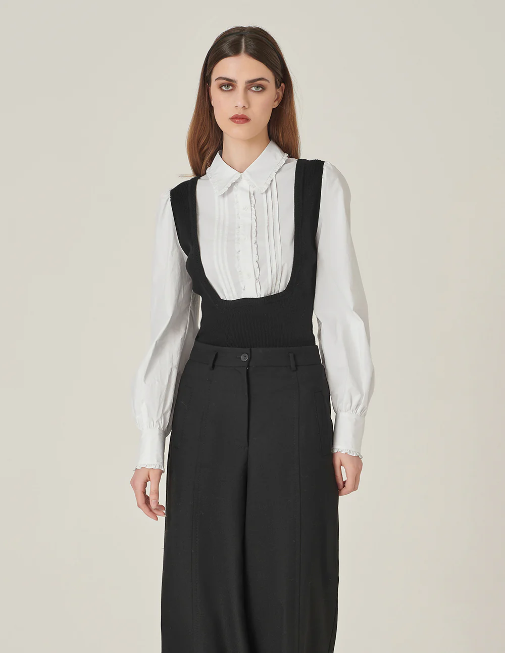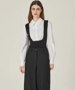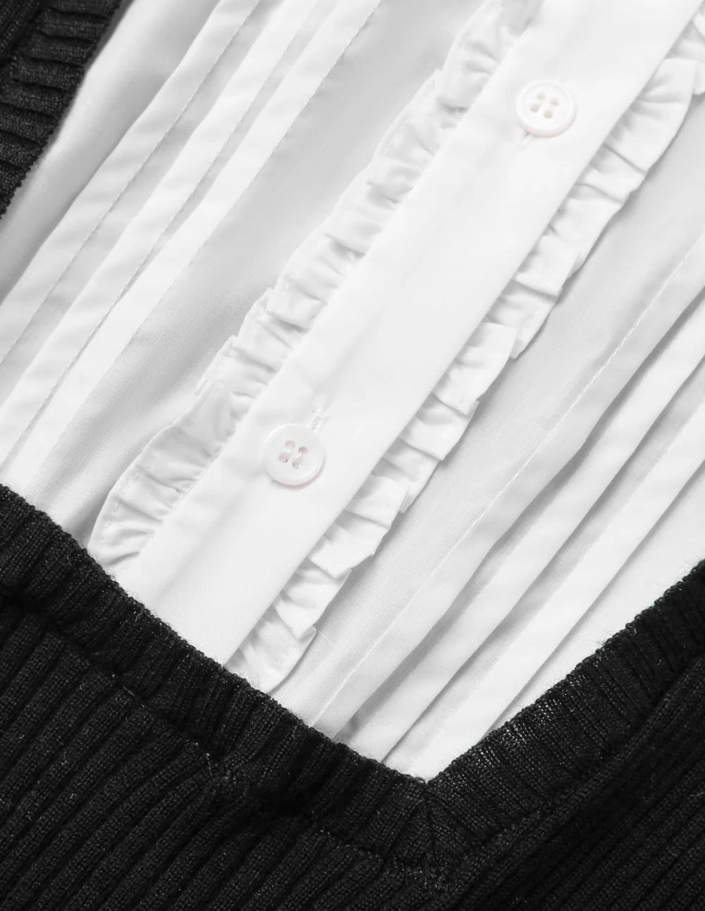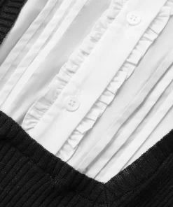 MARYLING’sblackandwhitecontrastingneedleshuttletopusesaU-shapedwoolenvestcombinedwithsweetandelegantfungusedgesandexquisitestripeddetailstocreateawarmwinteroutfitfullofcharmandfemininity.FitTruetosize,chooseyournormalsizeCompositionWovenmaterial:87.2%polyester,12.8%cottonKnittedmaterial:84.7%sheepwool15.3%nylonWashingmethodHandwashMaxwashingtemperature40¡æDonotbleachLayflattodryIronsoleplatemaximumtemperature110¡æRegulardrycleaningNote:DonotsoakSeparatewaterwashingReminder:Payattentiontomoisture-proofandmoth-proofwhenstoring