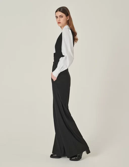 MARYLING Black Double-Sided Woolen Eight-Quarter Wide-Leg Pants BLACK | Womens Pants & Shorts