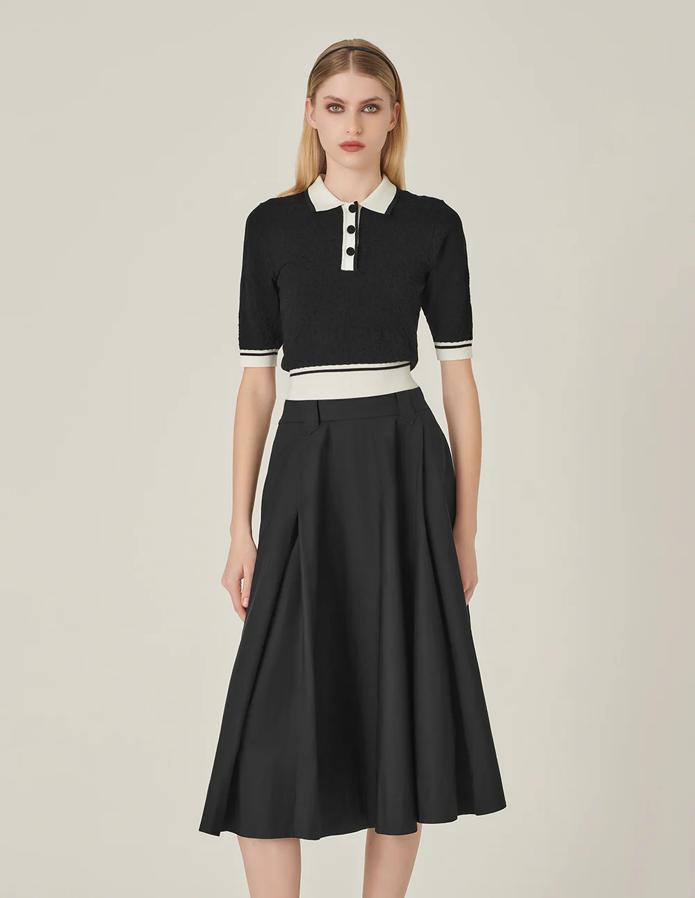 Be the first to review “MARYLING Black And White Contrasting Short-Sleeved Polo Collar Knitted Pullover MONOCHROME | Womens knitwear” Cancel reply