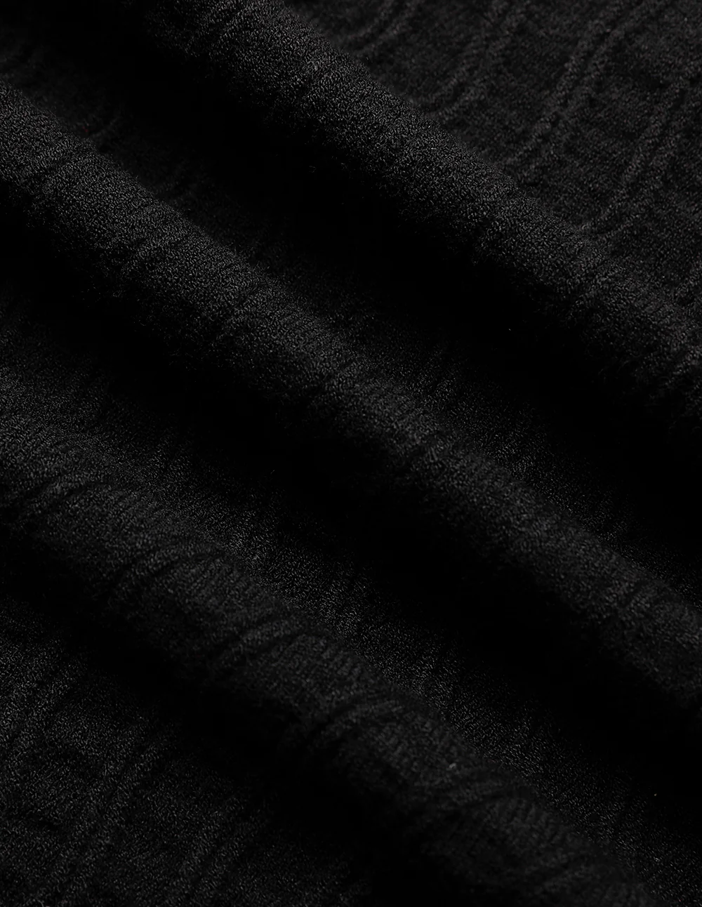MARYLING’ssweateriswovenwithhigh-elasticcore-spunyarn,whichisnoteasytodeform;itisclassicblackandwhite,withdarkpatterns,low-keyandtextured;theT-shirtcollarisopenedtomakethedetailsmoreexciting,simpleandelegant,perfectforautumnandwinterAmust-havefashionitem.FitTruetosize,chooseyournormalsizeCompositionBody:68.3%viscose31.7%polyesterRib:56.1%viscose27.2%polyester15.5%nylon1.2%spandexWashingmethodHandwashMaxwashingtemperature40¡æDonotbleachLayflattodryIronsoleplatemaximumtemperature110¡æMilddrycleaningNote:IronafterwashingDonotsoak