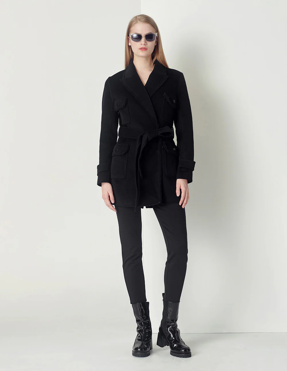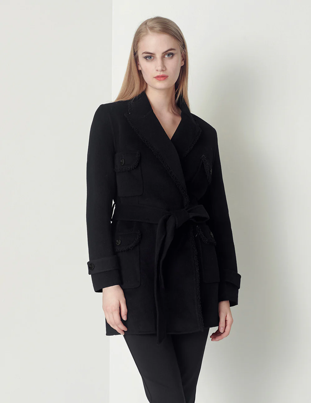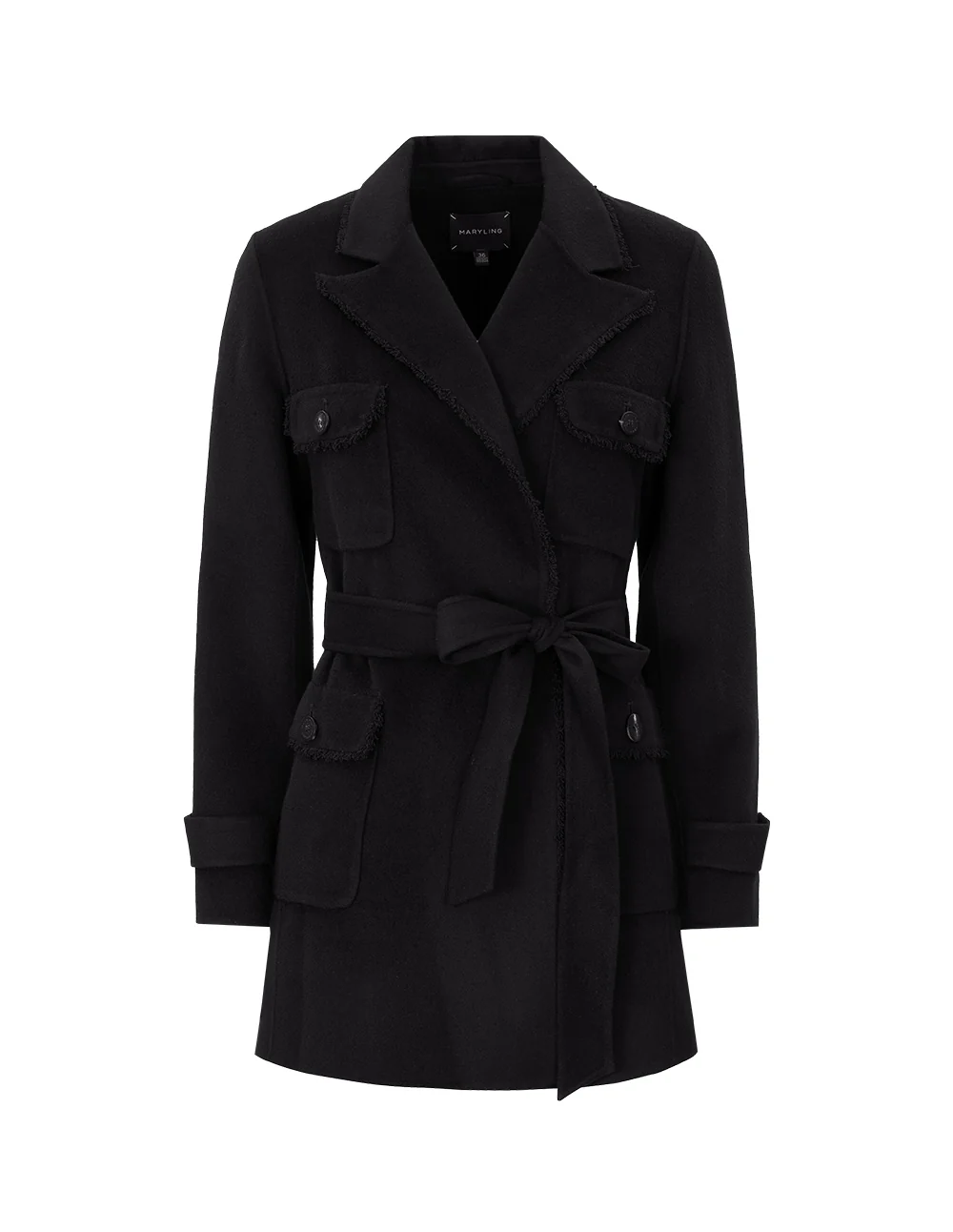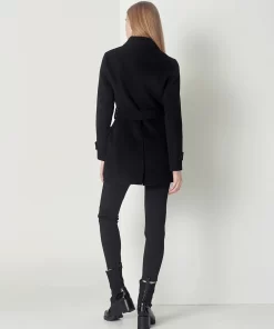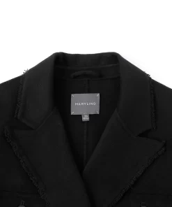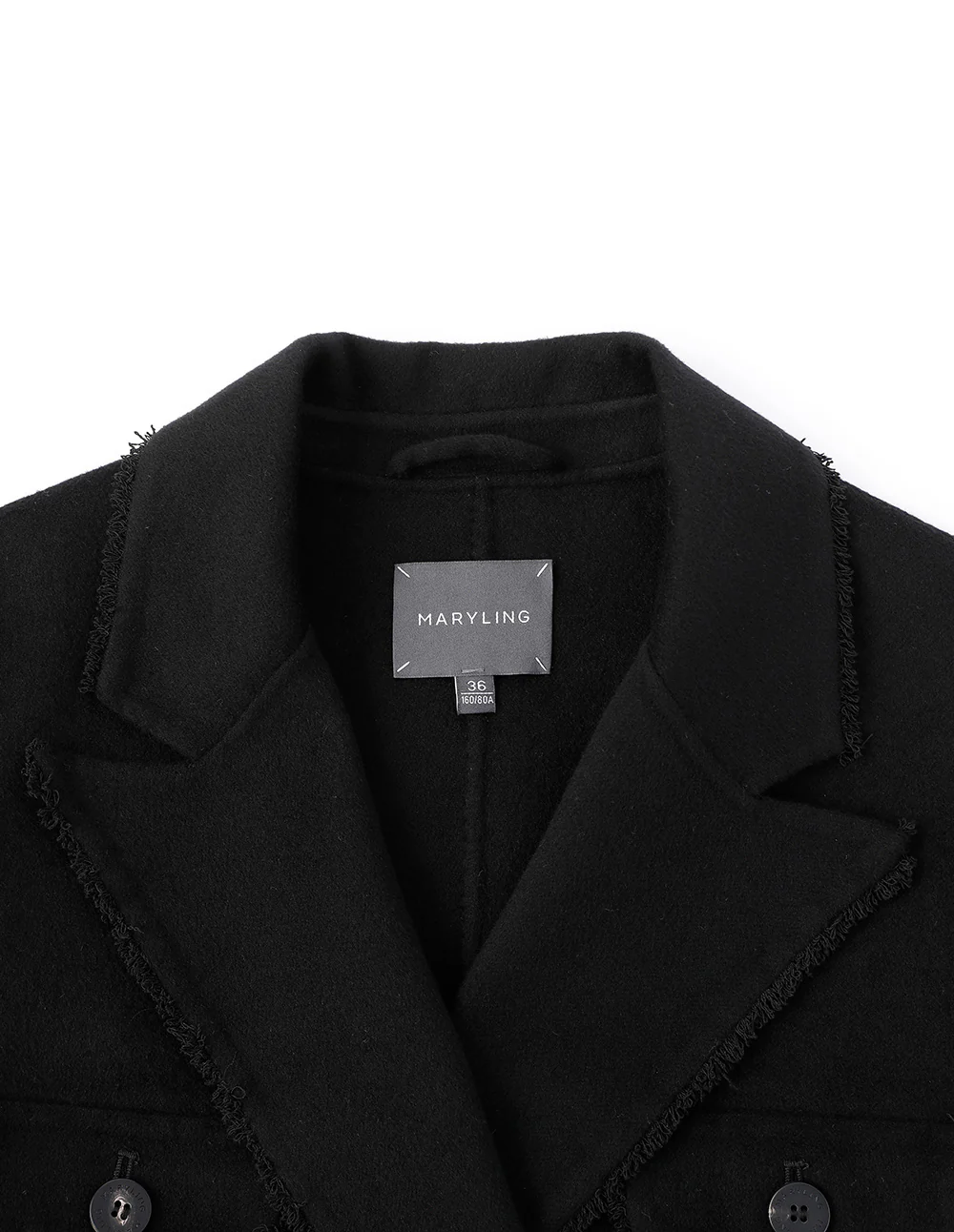 Maryling Black Double-Sided Woolen Lapels Mid-Length Wool Coat BLACK | Womens JACKET & COAT