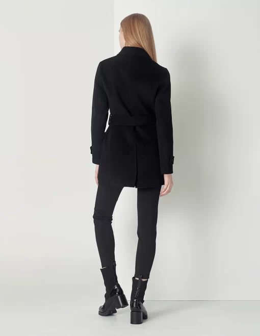 Maryling Black Double-Sided Woolen Lapels Mid-Length Wool Coat BLACK | Womens JACKET & COAT