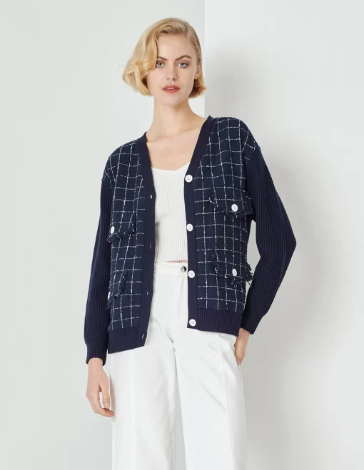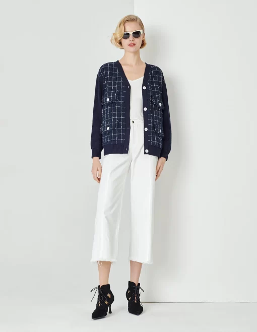 Be the first to review “MARYLING Blue And White Check Needle Shuttle Cardigan MIX | Womens knitwear” Cancel reply