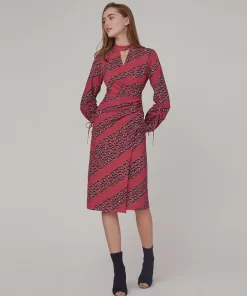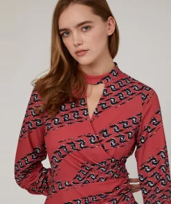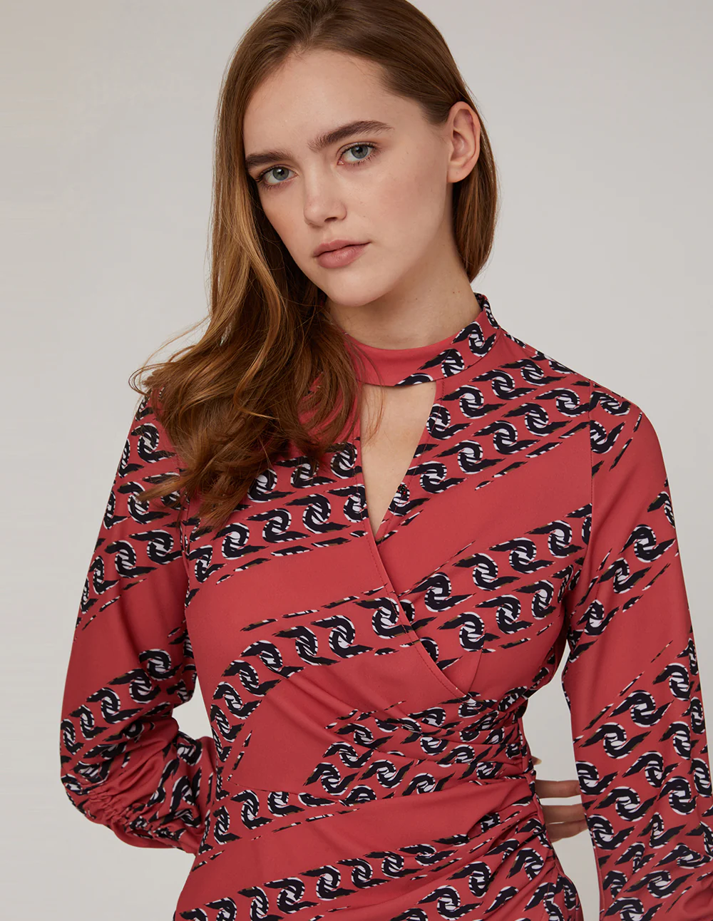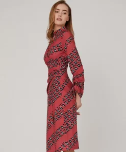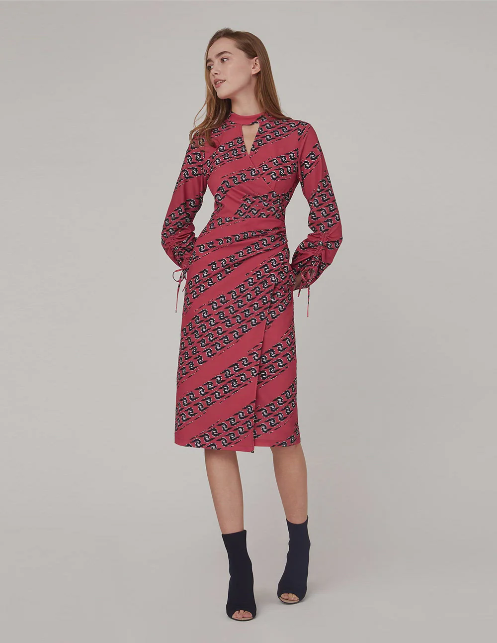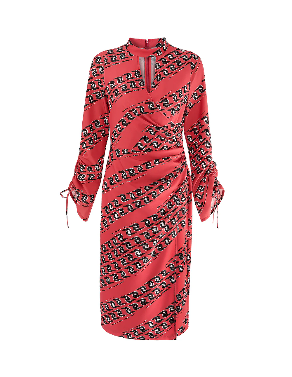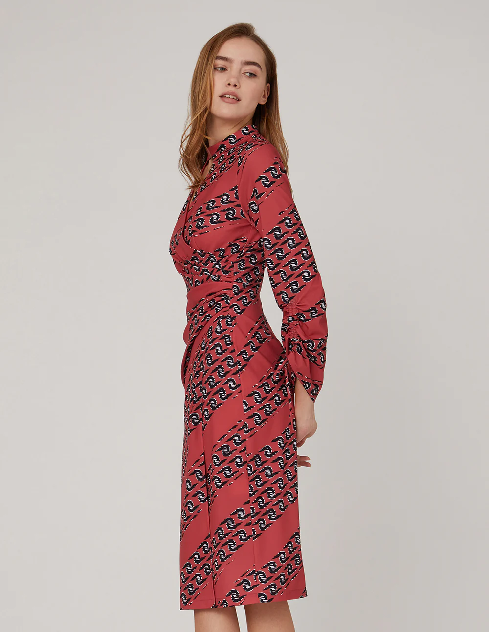MARYLING CHAIN PRINT DRAWSTRING DRESS RED | Womens Printed Dress
