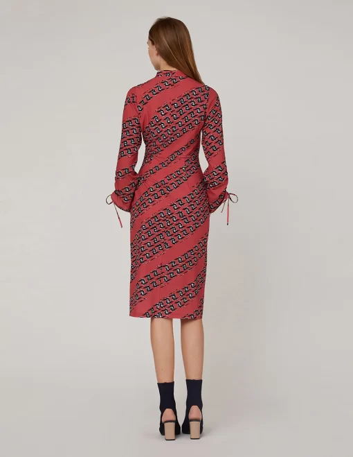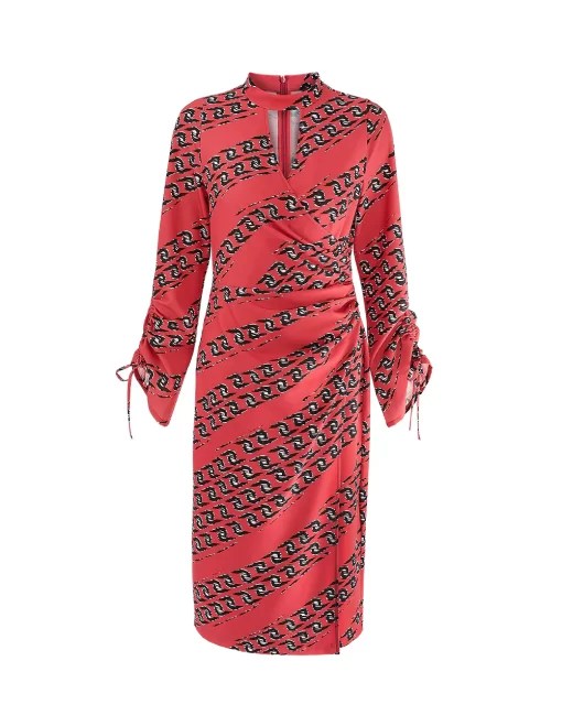 MARYLING CHAIN PRINT DRAWSTRING DRESS RED | Womens Printed Dress