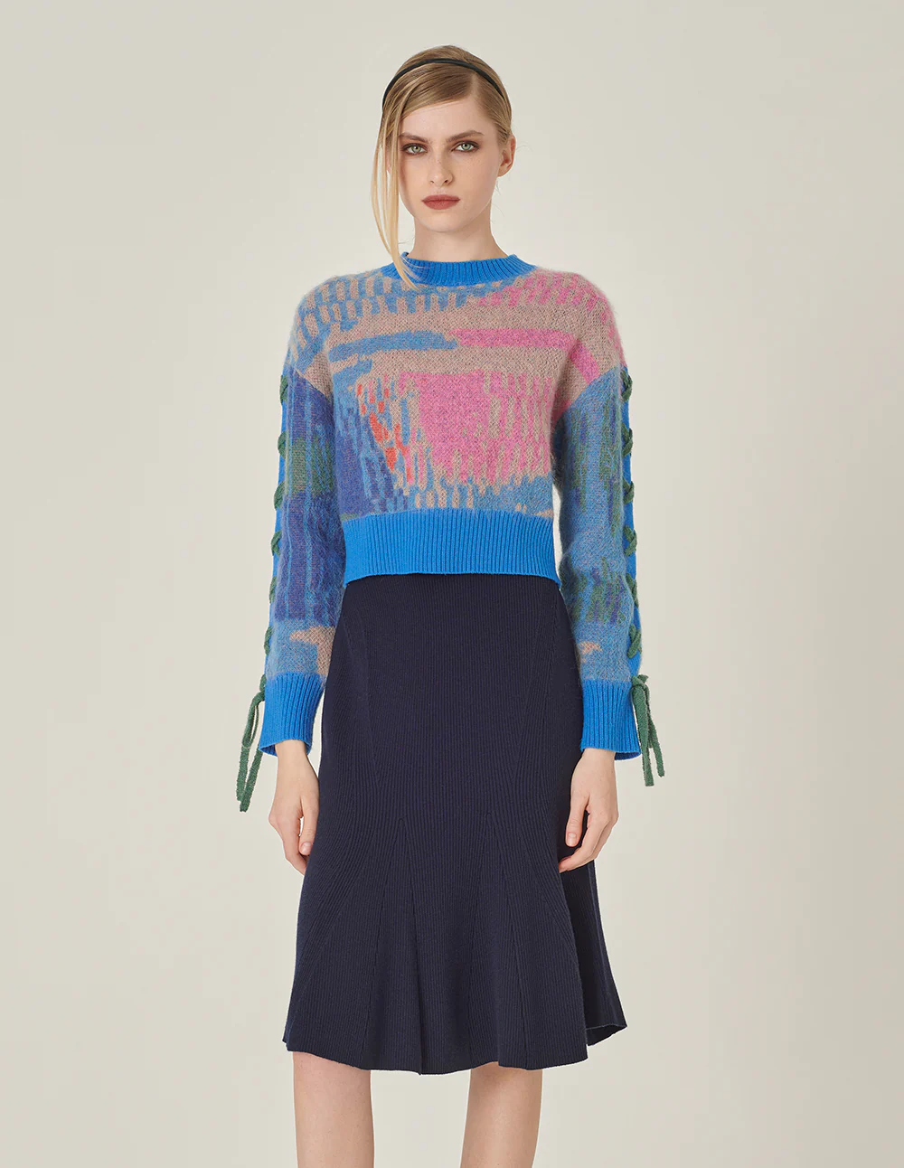 Be the first to review “MARYLING Color Block Long-Sleeve Jacquard Knitted Cropped Pullover DARK BLUE | Womens knitwear” Cancel reply