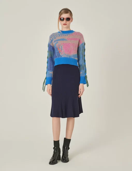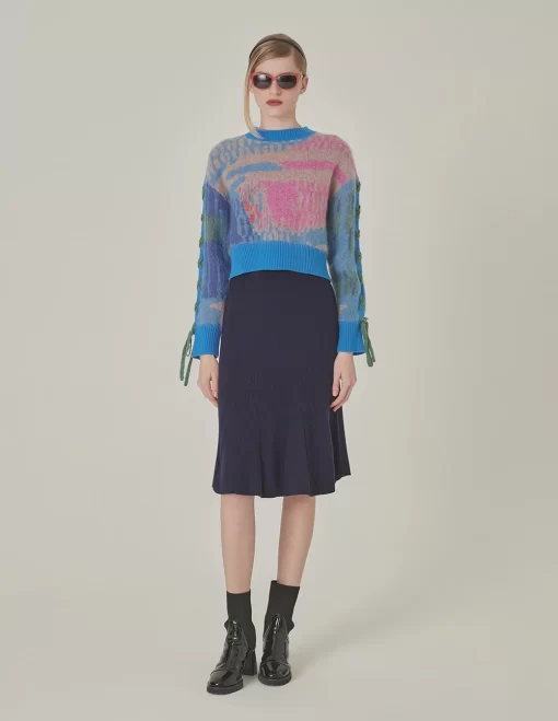 Be the first to review “MARYLING Color Block Long-Sleeve Jacquard Knitted Cropped Pullover DARK BLUE | Womens knitwear” Cancel reply