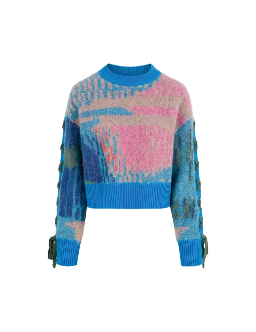MARYLING’sknittedpulloverusesaspeciallakebluecolorwithavarietyofdazzlingcoloredyarnstoweaveabeautifulscenelikeanoilpaintingofavillageundertheAlps,whichismoreartistic;thesmallroundneckpulloverstyleiswornwithsidesleevesTheropedesignisnovelandplayful,andcanbepairedwithjeanstomaketheoveralllookfresherandmorebeautiful.FitTruetosize,chooseyournormalsizeCompositionMainmaterial:42.1%nylon30.7%mohair27.2%sheepwoolRib:91.8%sheepwool8.2%nylonWashingmethodDonotwashableDonotbleachLayflattodryIronsoleplatemaximumtemperature110¡æMilddrycleaningReminder:Payattentiontomoisture-proofandmoth-proofwhenstoring
