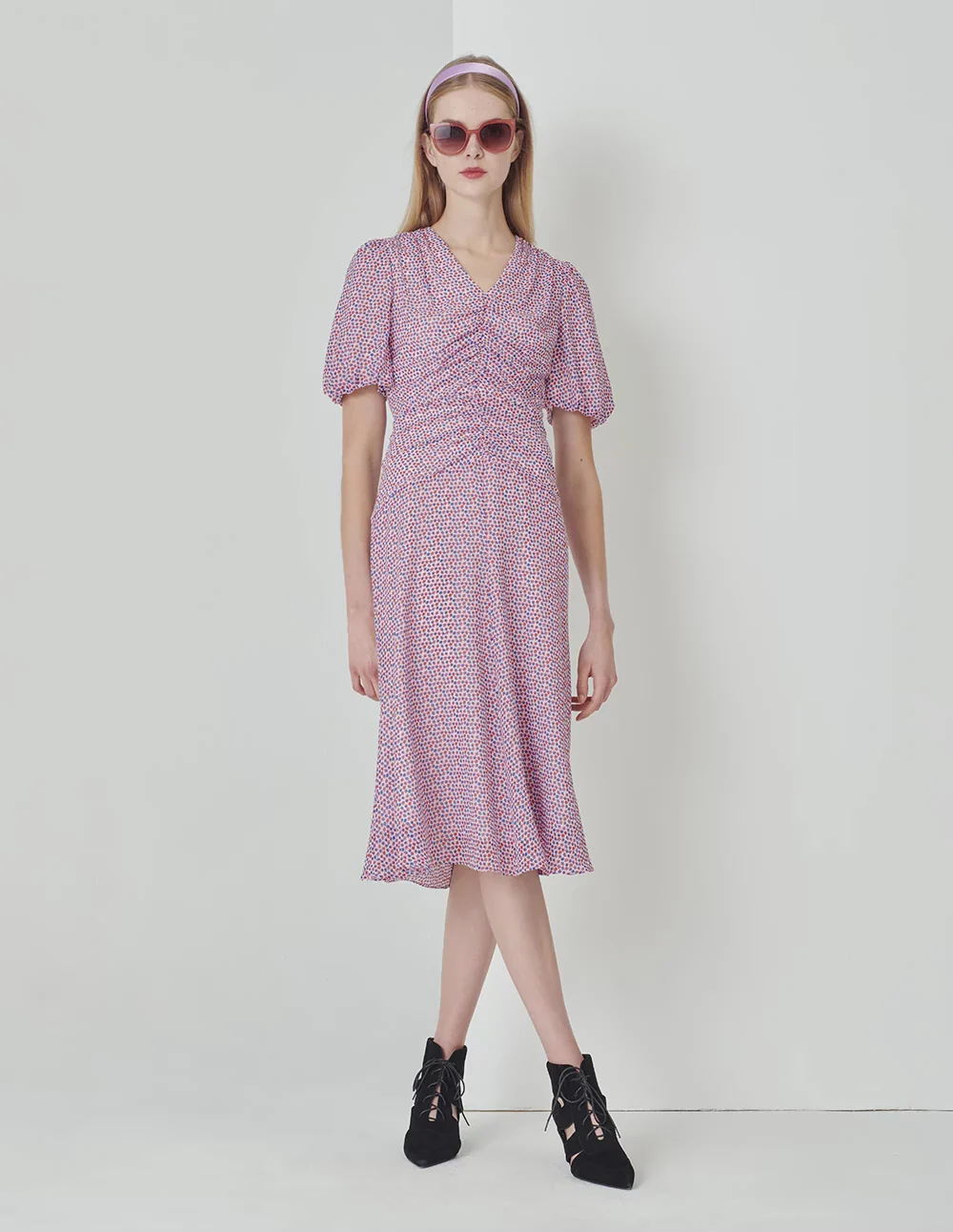 MARYLING’sprinteddressusessmallfloralplantsastheprintedpatternontheskirt,givingthisdressastrongromanticatmosphere.Thedetaileddesignofmicro-bubblesleevesandV-neckpleatsaddsalittlebitofvitalityandvariation,showingeleganceandFascinatingfemininity.FitTruetosize,chooseyournormalsizeComposition100%polyesterfiberLining:94.5%polyesterfiber5.5%SpandexWashingmethodHandwashMaxwashingtemperature40¡æDonotbleachHangingtodryIronsoleplatemaximumtemperature110¡æRegulardrycleaningNote:washseparately