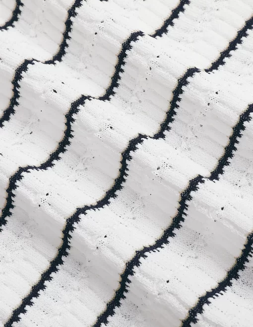 MARYLING’sknittedcardiganismainlywhitewithdarkbluestripedpatterns.Thelightandthinstyleexudesacoolsummerfeel,andthedeepV-necklongcardiganstyleshowsoffyourtemperament.FitTruetosize,chooseyournormalsizeCompositionBody:61.4%viscose30.5%nylon8.1%polyesterfilmfiberCollarpatch,belt,bagflap:66.6%viscose33.4%nylonSleeves:80.8%viscose19.2%nylonRib:79.3%viscose20.7%nylonWashingmethodHandwashMaxwashingtemperature40¡æDonotbleachLayflattodryIronsoleplatemaximumtemperature110¡æMilddrycleaningNote:IronafterwashingReversesidewashing