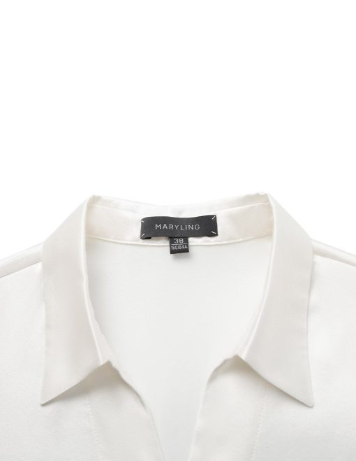 MARYLING’sshirtismadeoflustroussilkfabric,whichfeelssilkyandskin-friendly.Thestyleissimpleandelegant,andthelinesarecleanandneat,creatingalazyFrenchstylefordailyuse.FitTruetosize,chooseyournormalsizeCompositionFabriccomposition:89.5%mulberrysilk,10.5%spandexWashingmethodHandwashMaxwashingtemperature40¡æDonotbleachHangtodryintheshadeIronsoleplatemaximumtemperature110¡æMilddrycleaningNote:Onlywool-silkdetergentcanbeusedSeparatewaterwashing