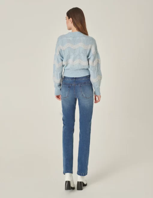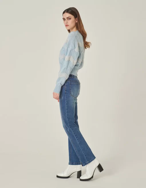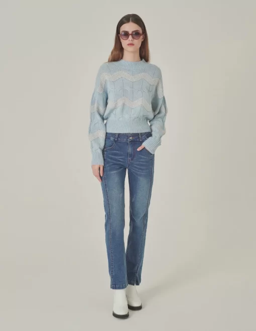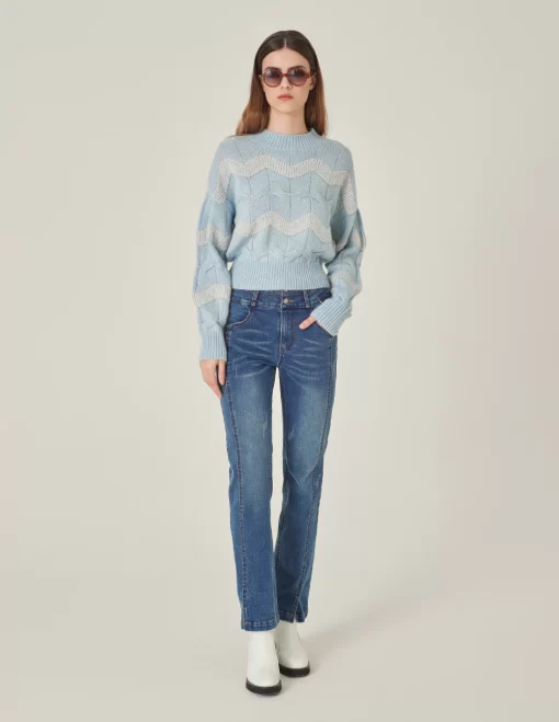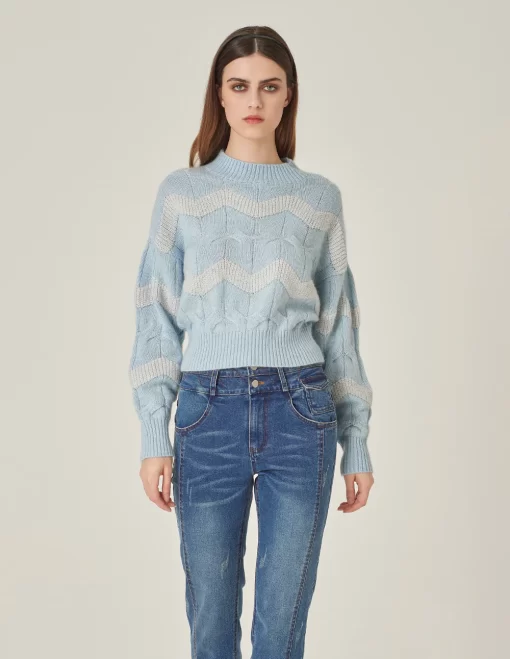 Be the first to review “MARYLING Crew Neck Striped Sequined Long-Sleeve Knitted Pullover LIGHT BLUE | Womens knitwear” Cancel reply