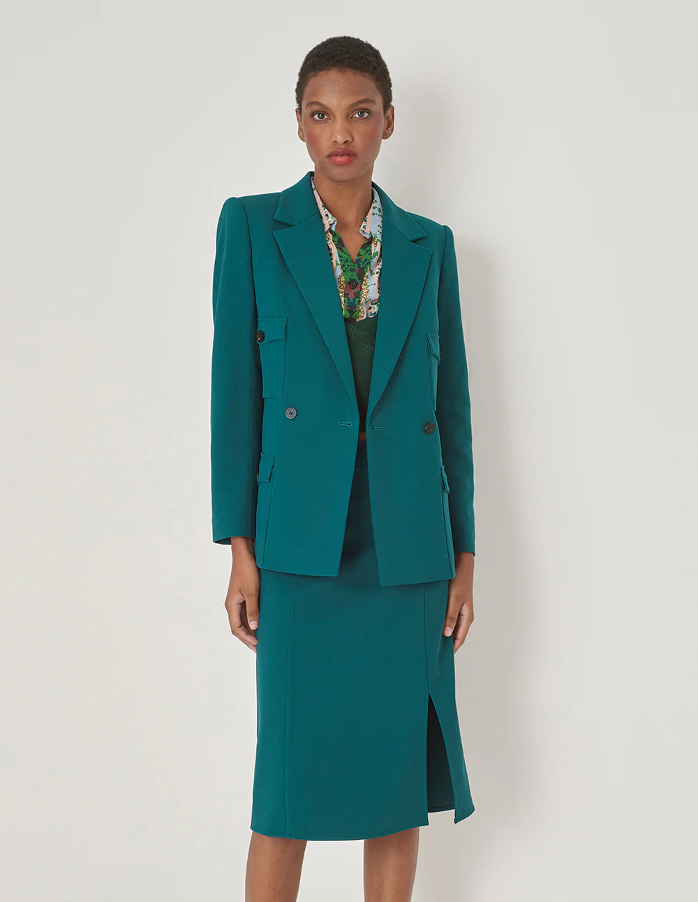 MARYLING Double Breasted Pocket Waist Blazer GREEN | NEW IN