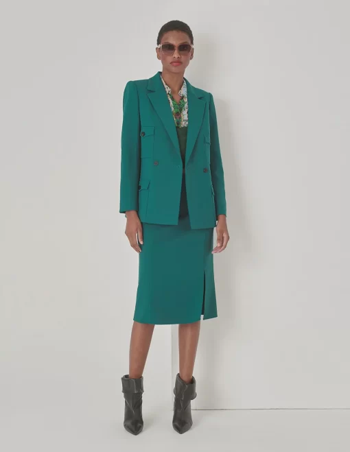 MARYLING Double Breasted Pocket Waist Blazer GREEN | NEW IN