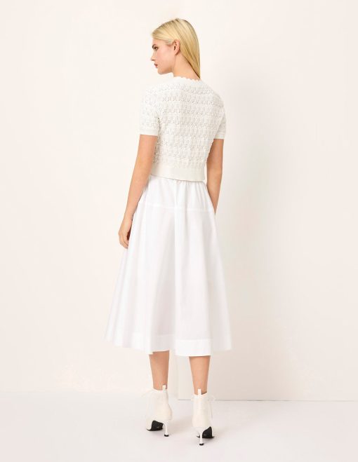 MARYLING’swhiteskirtismadeofhigh-countcotton,whichiscomfortable,light,breathable,andhasgooddrape.Thehipcircumferencehasasplitdesign,whichenrichesthelayersandmakesitmoretolerableforslimming.TheskirtisA-shapedandhasnaturalpleats,easilycreatingalazyandfreshspringandsummeratmosphere.FitTruetosize,chooseyournormalsizeComposition100%cottonLining:94.5%polyester,5.5%spandexWashingmethodHandwash,maximumwashingtemperature40℃DonotbleachhangtodryThemaximumtemperatureoftheironsoleplateis110℃RegulardrycleaningNote:washseparately