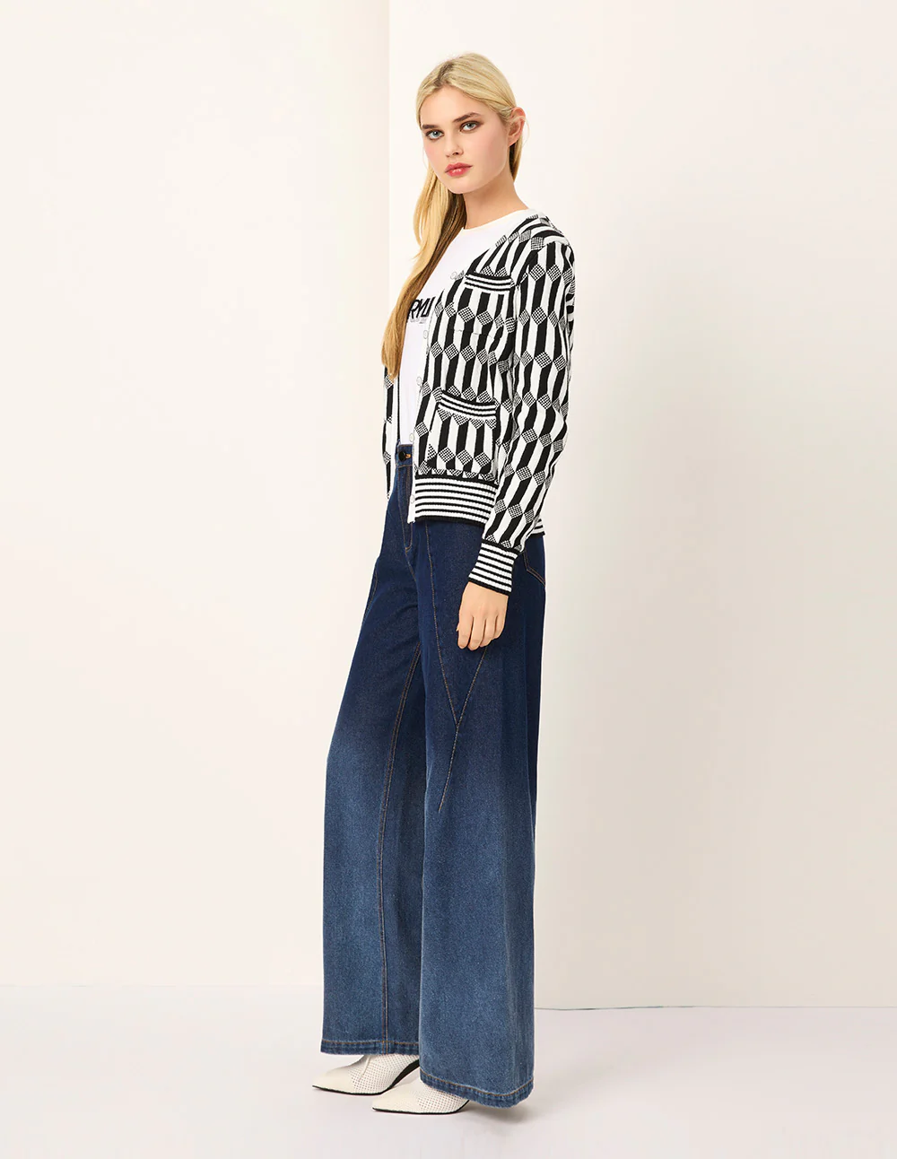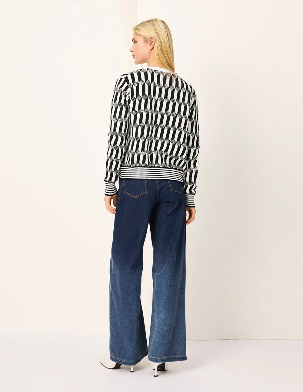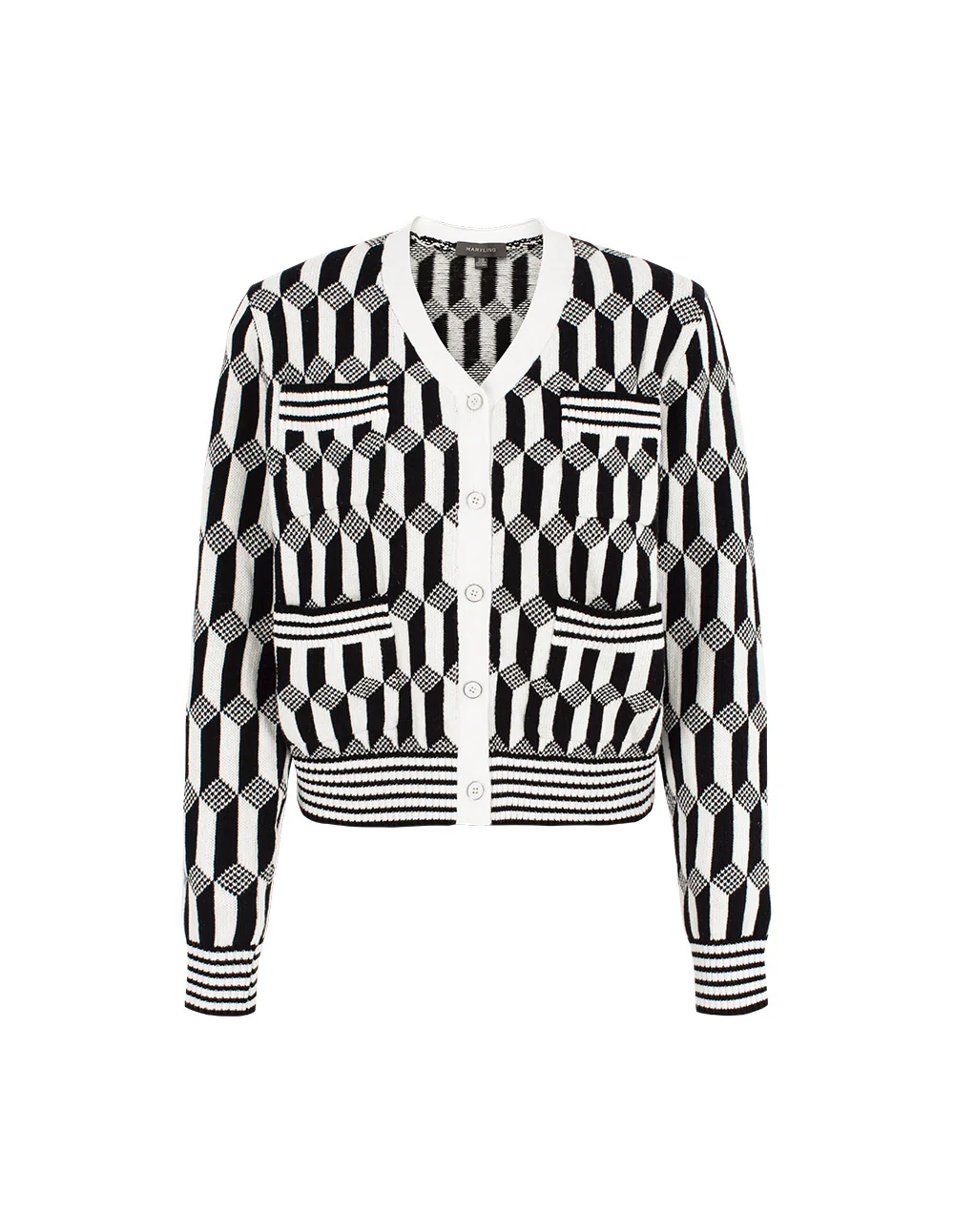 Be the first to review “MARYLING Geometric Patterned Jacquard Multi-Pockets Black & White Knit Cardigan MONOCHROME | Womens knitwear” Cancel reply