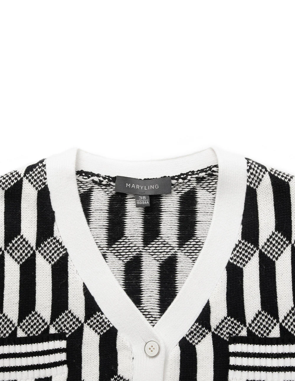 MARYLING’sknittedcardiganiswovenwithnaturalfiberyarn,whichisskin-friendlyandtextured.Thewholebodyismadeofblackandwhitetocreateageometricrhombusplaideffect,makingthewholepatternrichandthree-dimensionalandmorerhythmic.ThecoloredgesbetweenthestripesThedesignmakesthedetailsmoreexciting.Thefour-pocketV-neckcardiganstylehasafashionableandage-reducinglook,whichischicandwanton.FitTruetosize,chooseyournormalsizeCompositionBody:100%cottonRib:68.3%viscose31.7%polyesterWashingmethodDonotwashableDonotbleachLayflattodryIronsoleplatemaximumtemperature110¡æMilddrycleaning