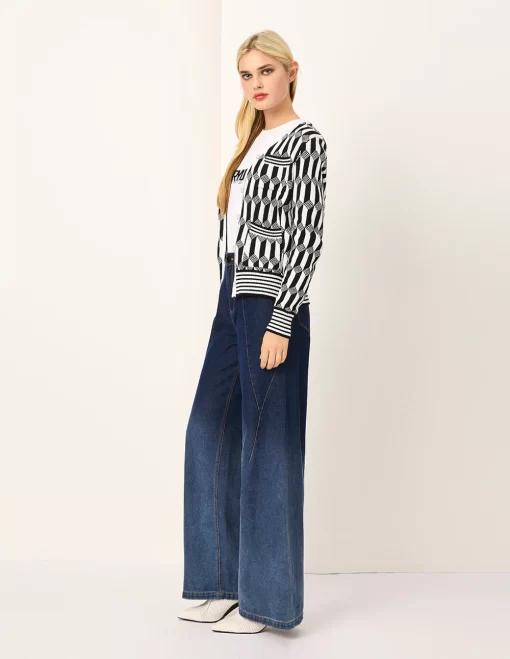 Be the first to review “MARYLING Geometric Patterned Jacquard Multi-Pockets Black & White Knit Cardigan MONOCHROME | Womens knitwear” Cancel reply