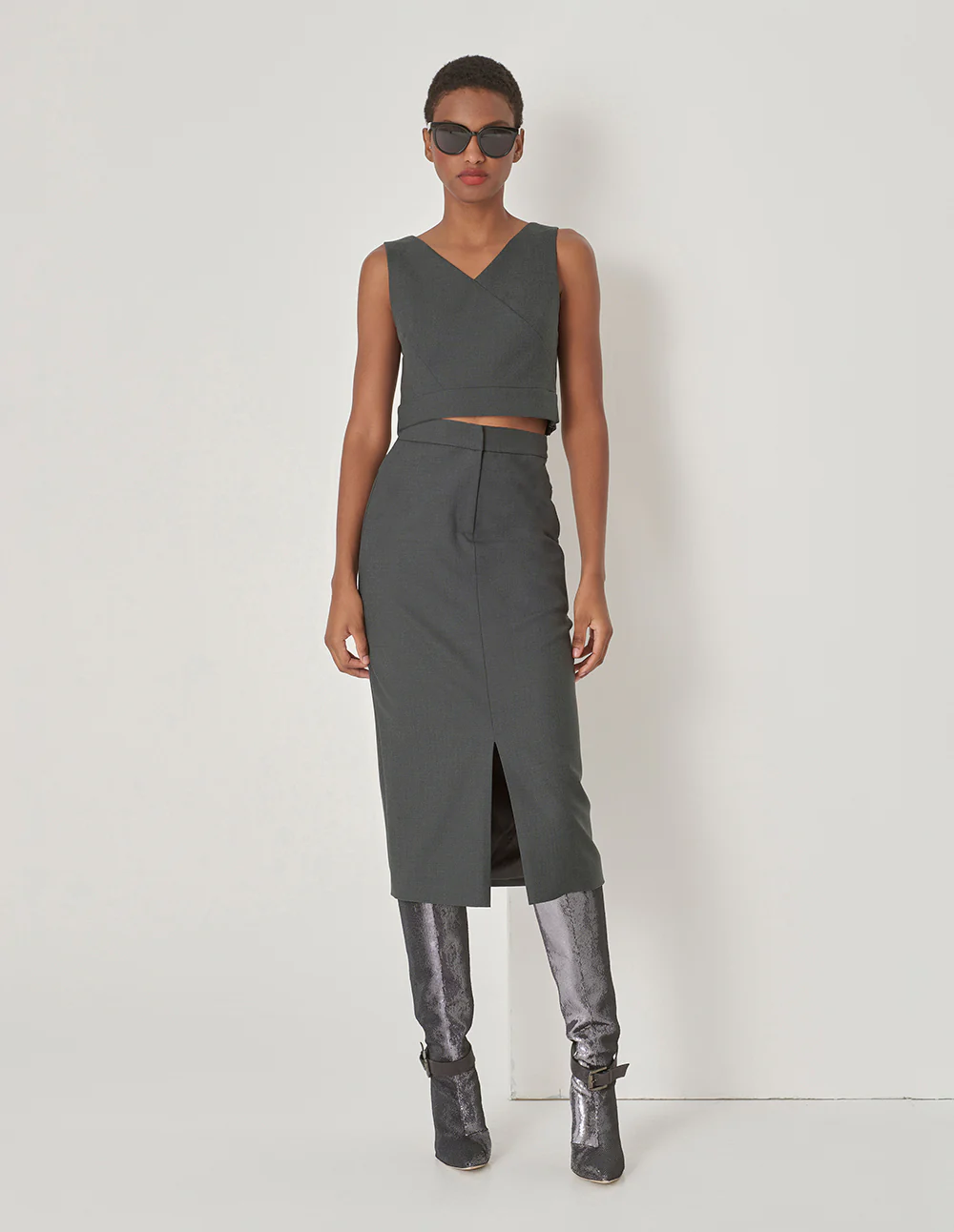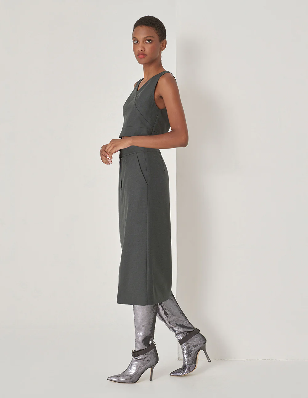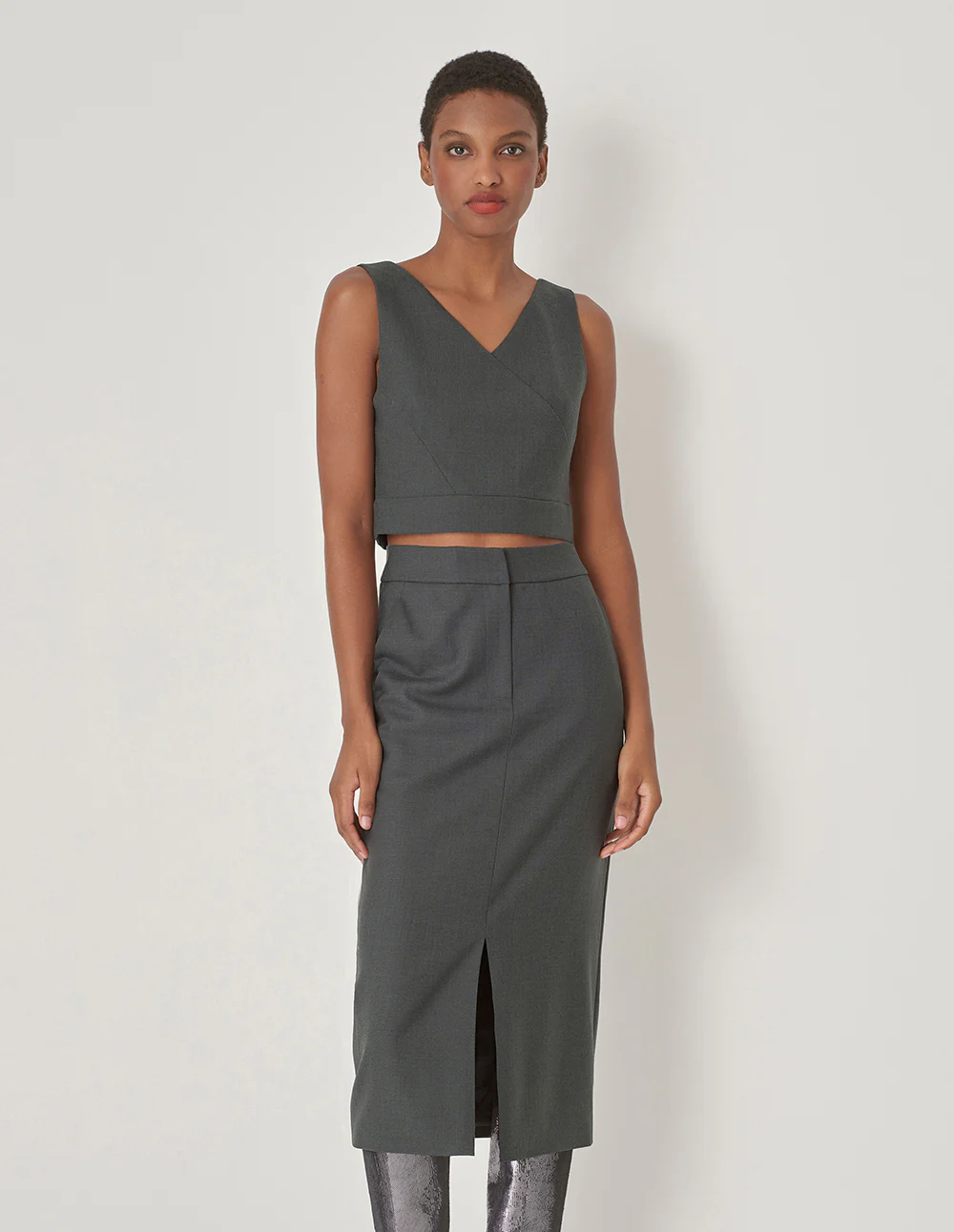 MARYLING’scross-splitveststyletop,matchedwiththemidiskirtofthesamefabric,presentsaretroandmoderntemperamentasawhole.FitTruetosize,chooseyournormalsizeComposition59.6%SheepWool35.2%Polyester5.2%spandexLining:56.3%viscose43.7%polyesterWashingmethodDonotwaterwashingDonotbleachHangingtodryThemaximumtemperatureofironbottomplateis110¡æRegulardrycleaningReminder:Payattentiontomoisture-proofandmoth-proofwhenstoring