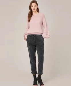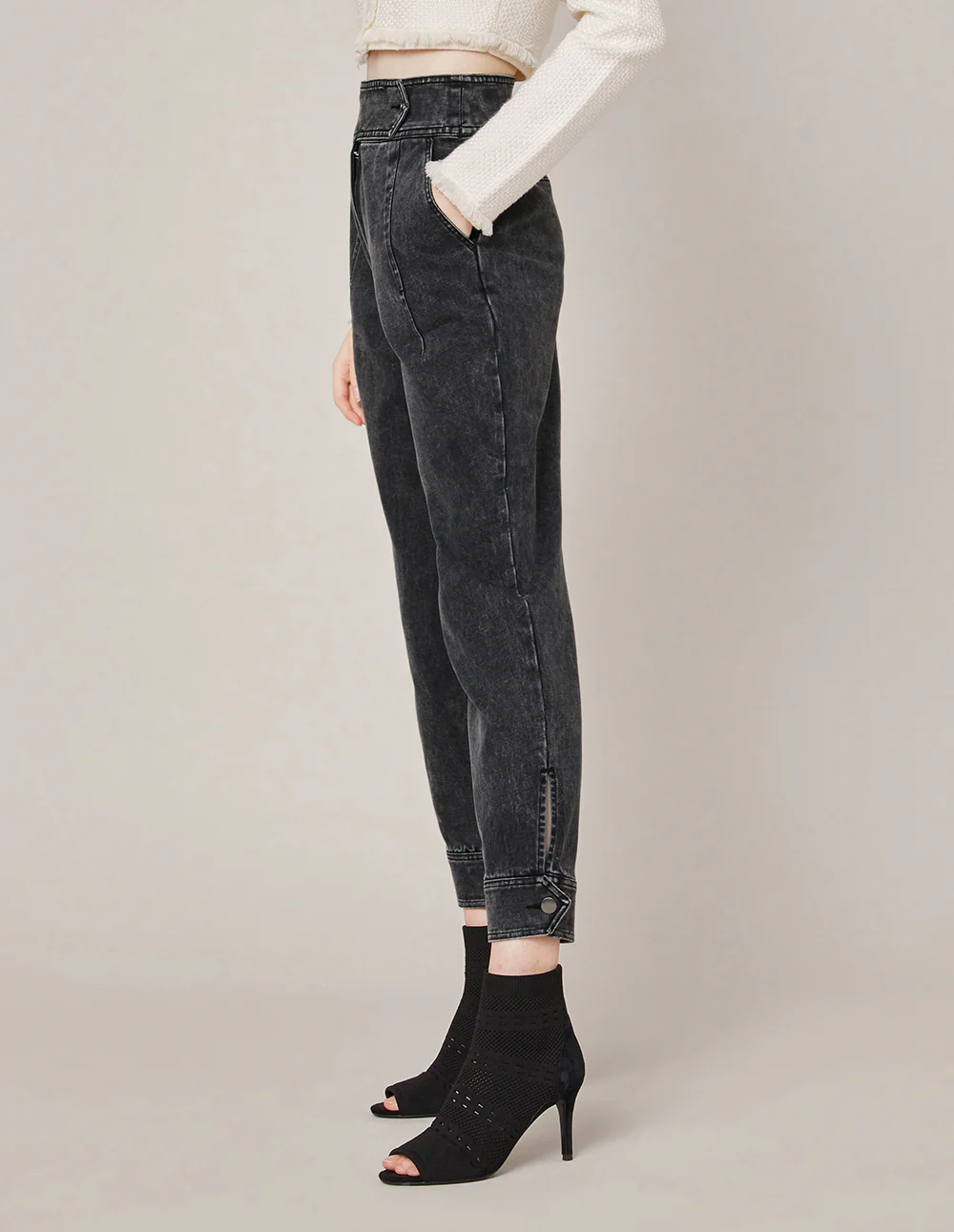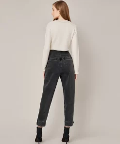 MARYLING HIGH-WAIST MEDIUM WASH ROLLED HEM JEANS DIM GRAY | Womens Pants & Shorts