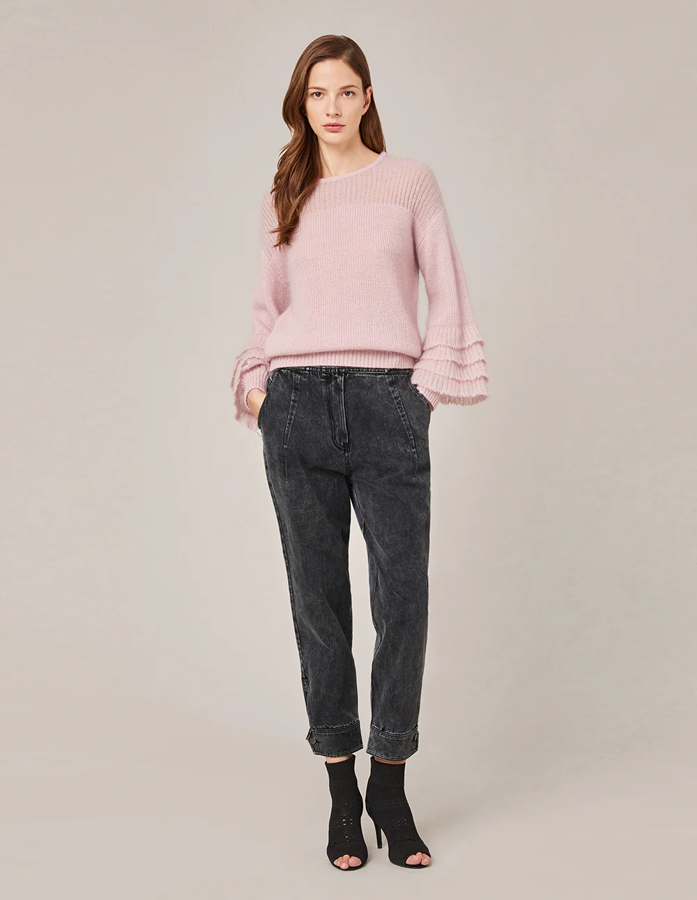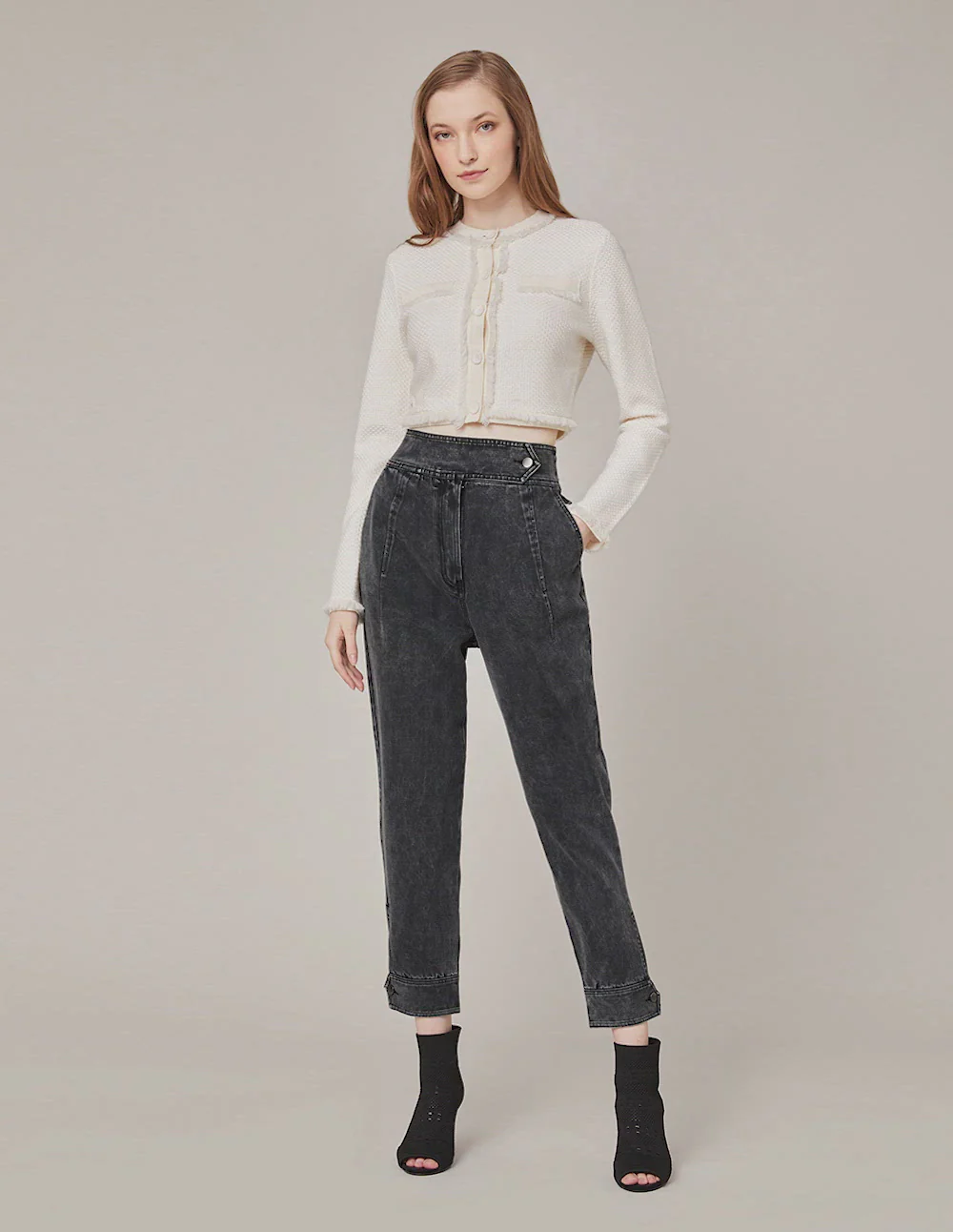Blackjeansrenderedinmedium-washdenim,executedinahigh-waistandpunctuatedwithrolledhems.Thejeansaccentuatesyourfigureandchannelayouthfulappealwithalaid-backfeel.Anthracite,retroandtrendyHighwaistandtaperedpantsdesign,visuallymodifytheleglines,comfortabletowearWashdeddenim,exquisitecraftsmanship,whiteningeffecttocreatearetrotoneCotton-feeldenim,strongskin-friendly,breathableandcomfortabletowearFitTruetosize,chooseyournormalsizeCompositionSHELLFABRIC:62.7%COTTON32.0%POLYESTER4.5%VISCOSE0.8%POLYURETHANEWashingmethodConventionalwashing,thehighestwashingtemperatureis30a??br>DonotbleachHangtodryThemaximumtemperatureoftheironsoleplateis110a??br>ConventionaldrycleaningNote:Washseparately