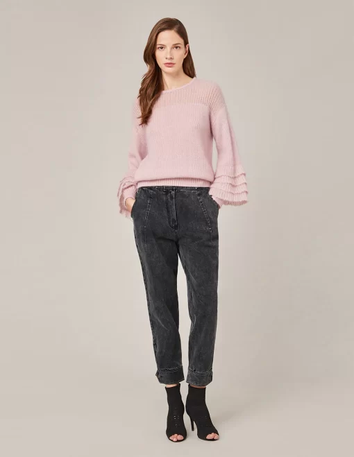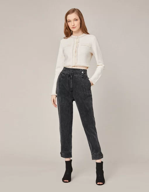 MARYLING HIGH-WAIST MEDIUM WASH ROLLED HEM JEANS DIM GRAY | Womens Pants & Shorts