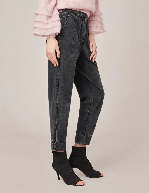 Blackjeansrenderedinmedium-washdenim,executedinahigh-waistandpunctuatedwithrolledhems.Thejeansaccentuatesyourfigureandchannelayouthfulappealwithalaid-backfeel.Anthracite,retroandtrendyHighwaistandtaperedpantsdesign,visuallymodifytheleglines,comfortabletowearWashdeddenim,exquisitecraftsmanship,whiteningeffecttocreatearetrotoneCotton-feeldenim,strongskin-friendly,breathableandcomfortabletowearFitTruetosize,chooseyournormalsizeCompositionSHELLFABRIC:62.7%COTTON32.0%POLYESTER4.5%VISCOSE0.8%POLYURETHANEWashingmethodConventionalwashing,thehighestwashingtemperatureis30a??br>DonotbleachHangtodryThemaximumtemperatureoftheironsoleplateis110a??br>ConventionaldrycleaningNote:Washseparately