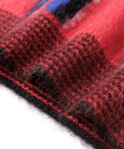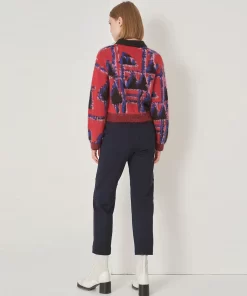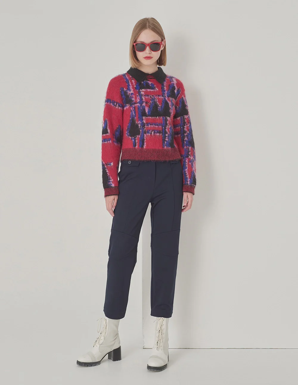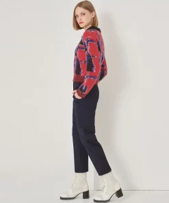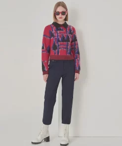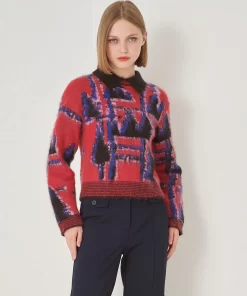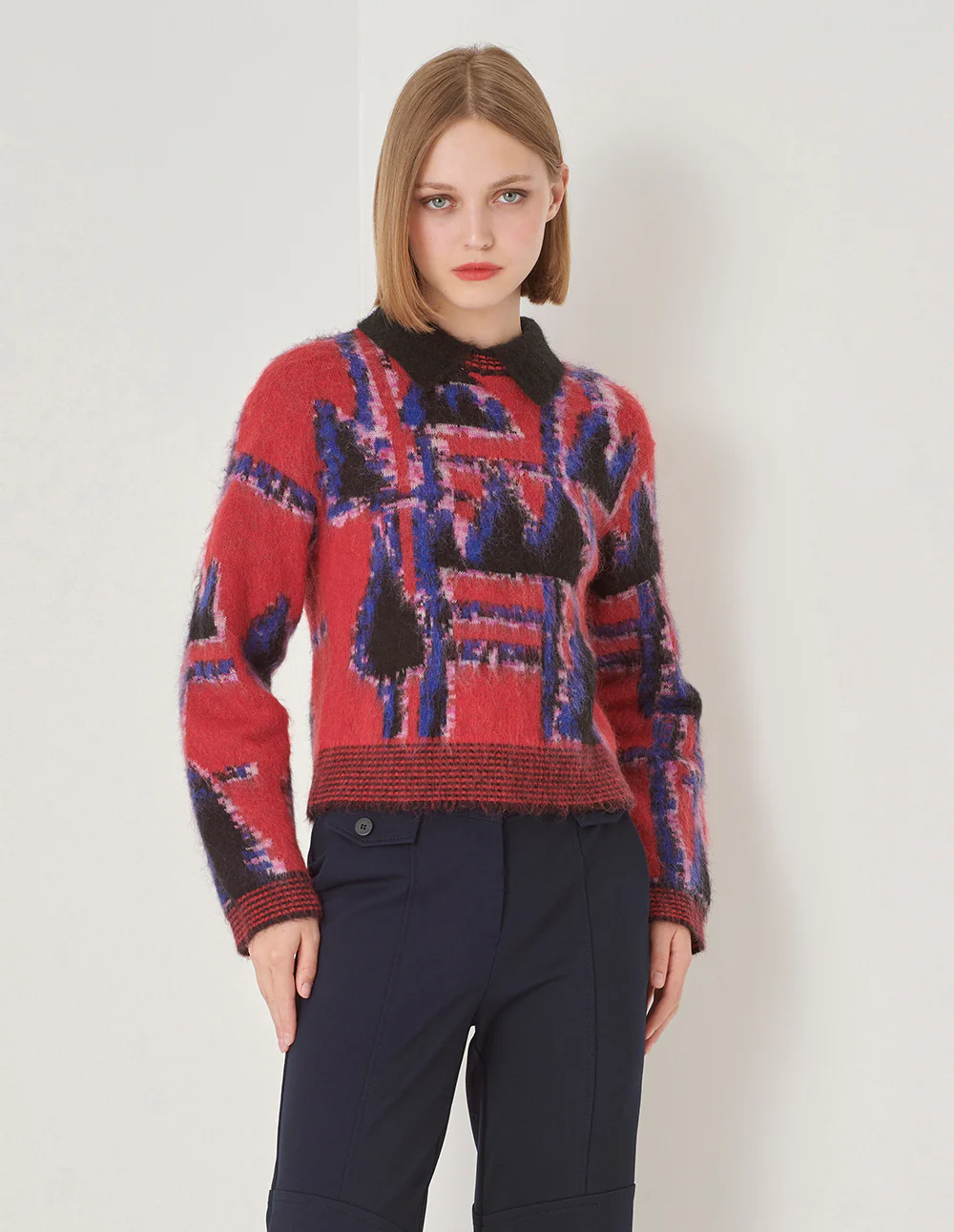 MARYLING Lapel Red And Blue Puzzle Knit Sweater PUZZLE | Womens knitwear