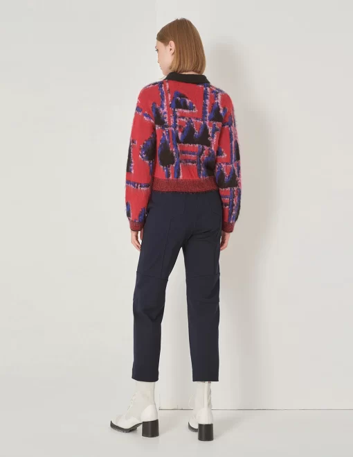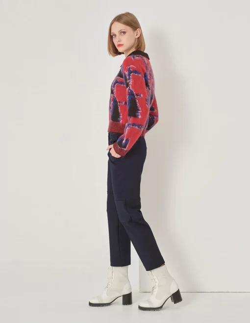 MARYLING Lapel Red And Blue Puzzle Knit Sweater PUZZLE | Womens knitwear