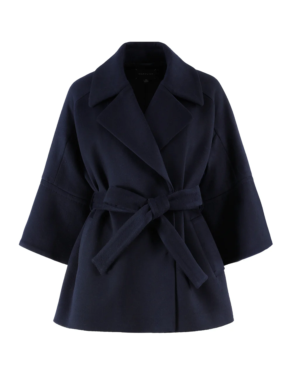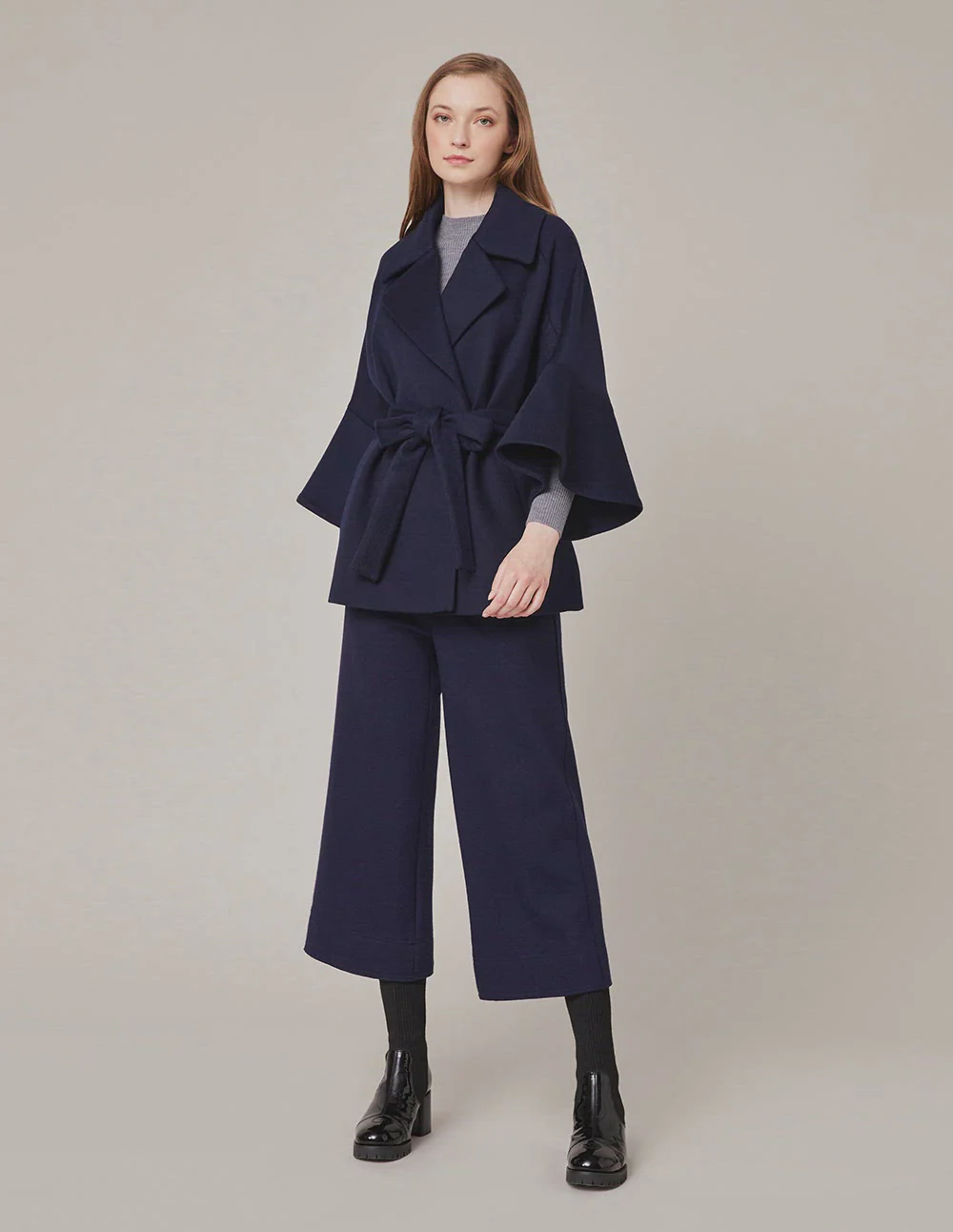 MARYLING Lapel Wool Ruffle Sleeve Belted Jacket DARK BLUE | Womens JACKET & COAT