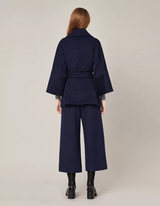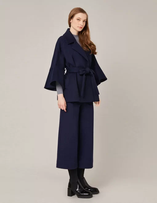 MARYLING Lapel Wool Ruffle Sleeve Belted Jacket DARK BLUE | Womens JACKET & COAT
