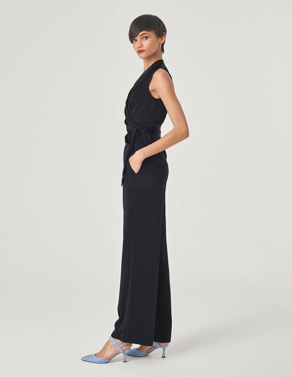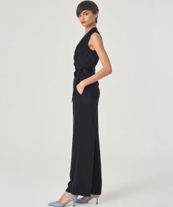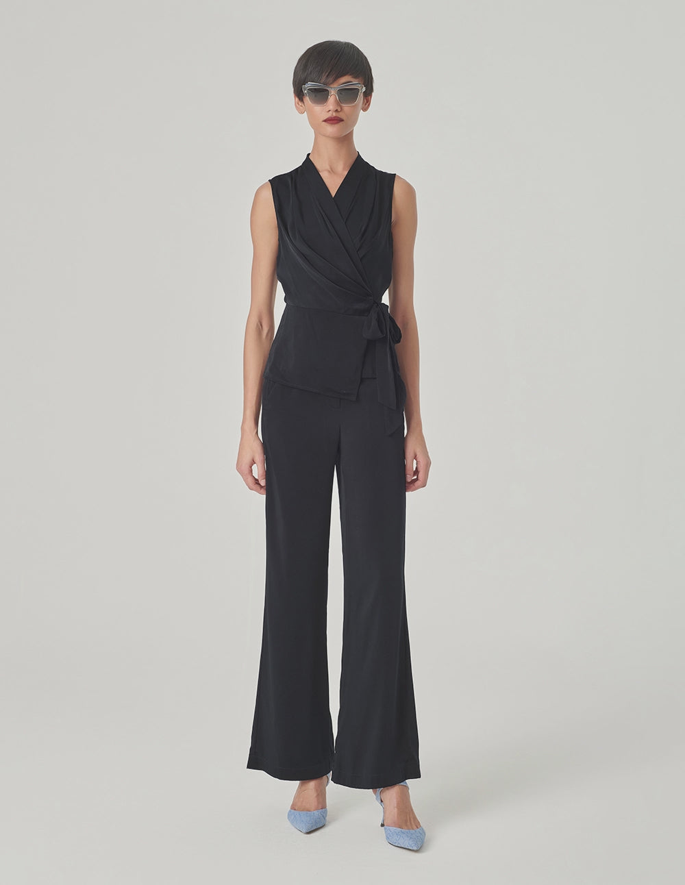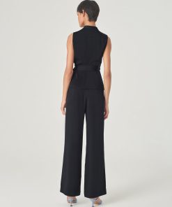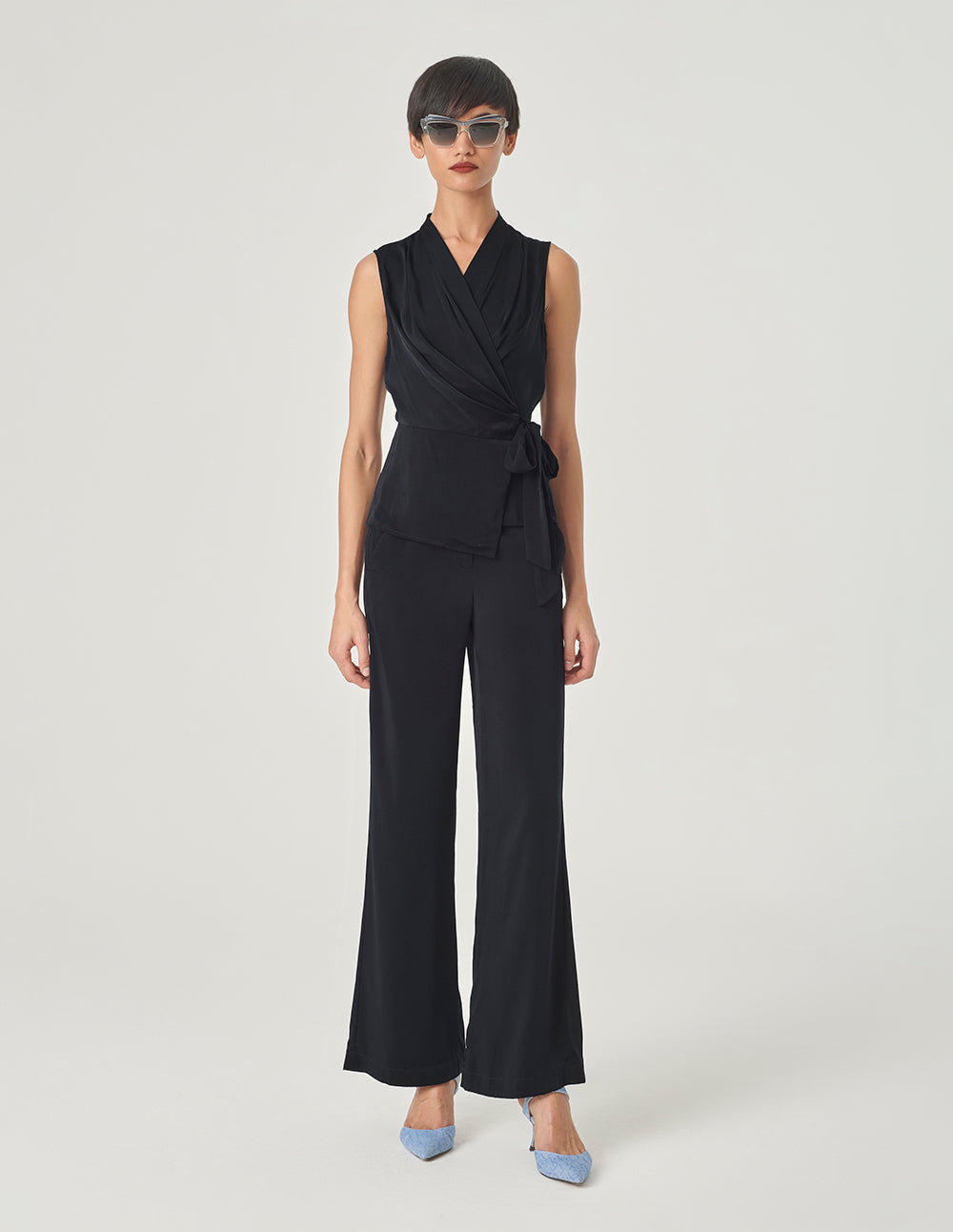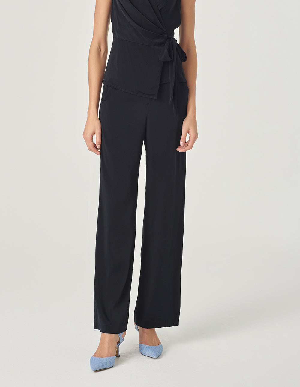 MARYLING Black Wide-Waisted Decorative Slim Fit Stretch Pants BLACK | Womens Pants & Shorts