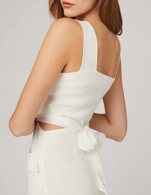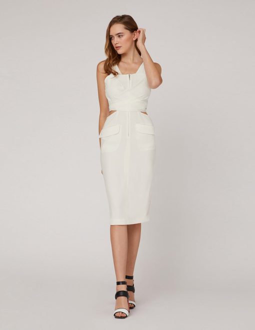 MARYLING Metallic zip overlapping waistband sleeveless dress WHITE | Womens offce dress