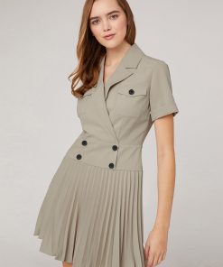 MARYLINGdouble-breastedsuitskirtwithlapelcollar,femininesunpleatdesignatthehem,double-breastedbuttonsandtoolpocketelements,aperfectblendofsophisticationandfemininity.Thegentlemilkteacolourhighlightsthefeelthatworksforcorporateandleisurewear.FitTruetosize,chooseyournormalsizeComposition100%polyesterfiberWashingmethodDonotwashableDonotbleachLayflattodryIronsoleplatemaximumtemperature110℃MilddrycleaningNote:washseparately