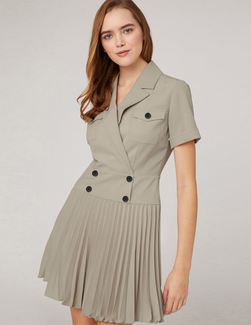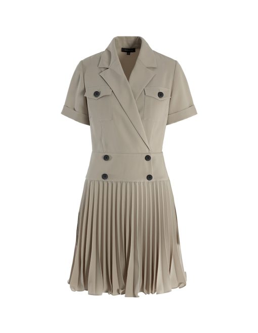 MARYLINGdouble-breastedsuitskirtwithlapelcollar,femininesunpleatdesignatthehem,double-breastedbuttonsandtoolpocketelements,aperfectblendofsophisticationandfemininity.Thegentlemilkteacolourhighlightsthefeelthatworksforcorporateandleisurewear.FitTruetosize,chooseyournormalsizeComposition100%polyesterfiberWashingmethodDonotwashableDonotbleachLayflattodryIronsoleplatemaximumtemperature110℃MilddrycleaningNote:washseparately