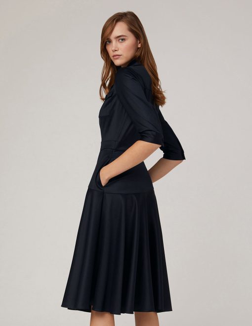 MARYLING Notch Lapel Asymmetrical Flared Dress BLUE | Womens offce dress