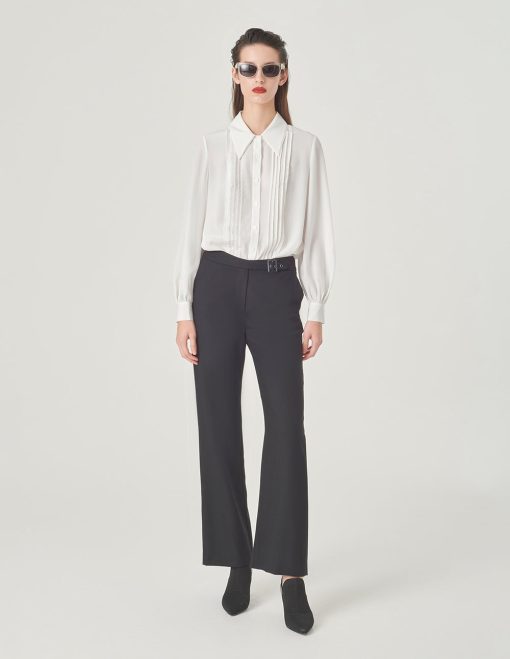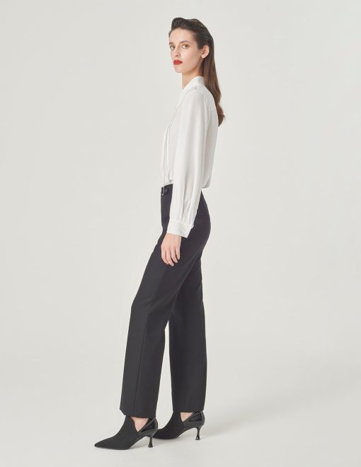 MARYLING Black Double-Sided Woolen Eight-Quarter Wide-Leg Pants BLACK | Womens Pants & Shorts