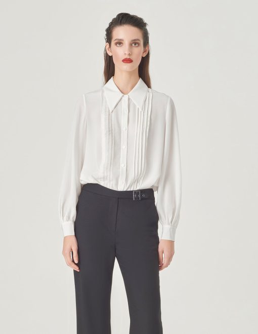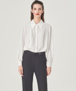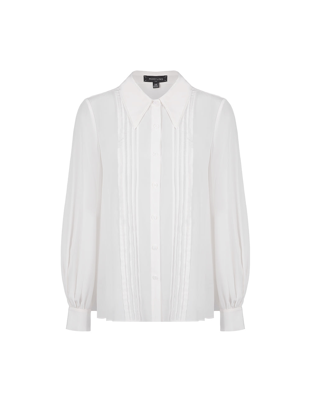 MARYLING’swhitesilkshirtusesthecenter-frontstripedesigndetailsandtheingenuityofslightlypuffedsleevestoaddabitofretroflavour,givingitasoftyetelegantfemininity.FitTruetosize,chooseyournormalsizeComposition100%PuresilkWashingmethodHandwashMaxwashingtemperature40¡æDonotbleachHangtodryintheshadeIronsoleplatemaximumtemperature110¡æMilddrycleaningNote:Onlywool-silkdetergentcanbeusedSeparatewaterwashing