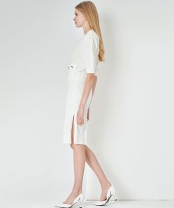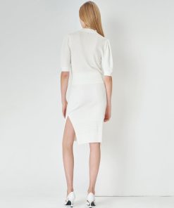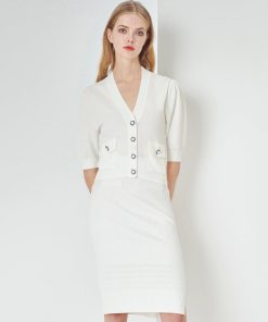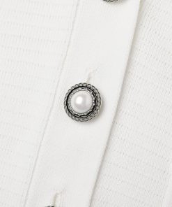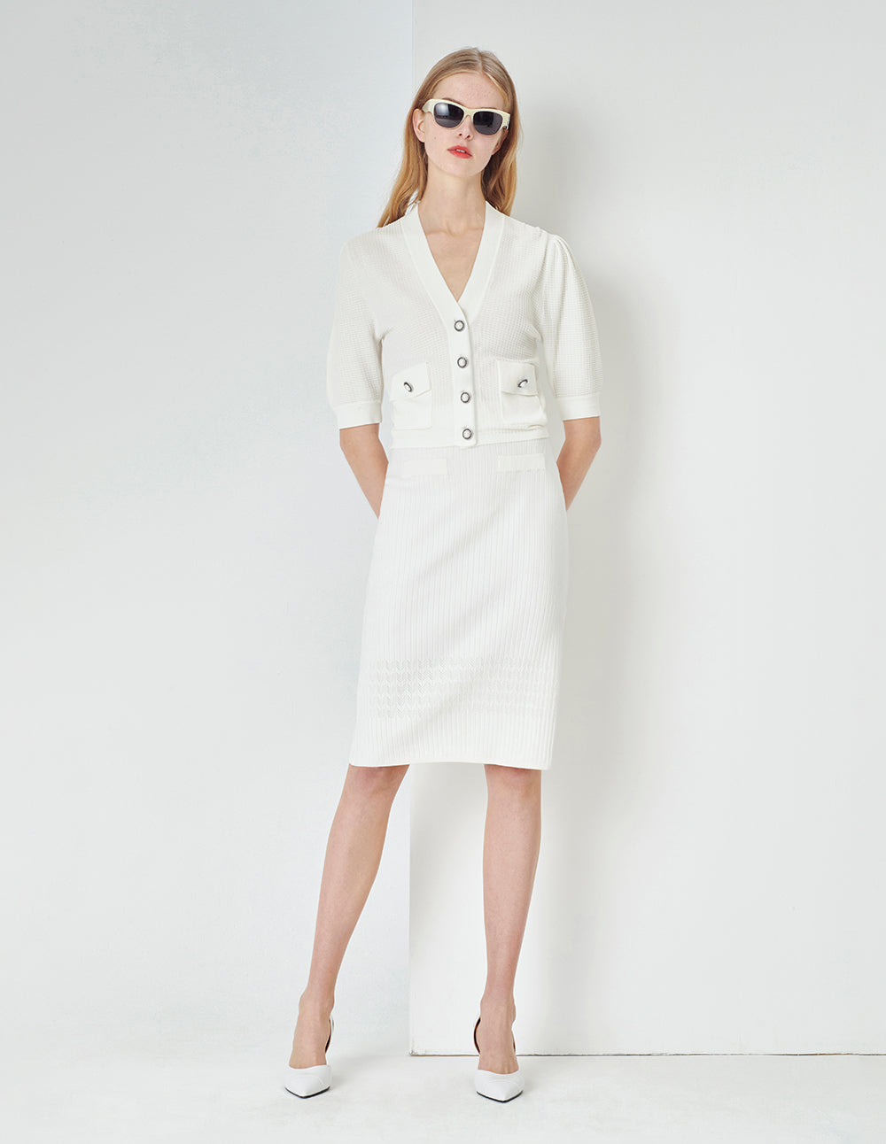 MARYLING Off-White V-Neck Pearl Button Short-Sleeved Knitted Cardigan WHITE | NEW IN