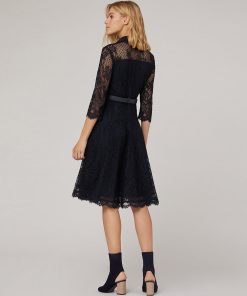 MARYLING PEAK-LAPEL MIDI LACE DRESS BLUE | NEW IN