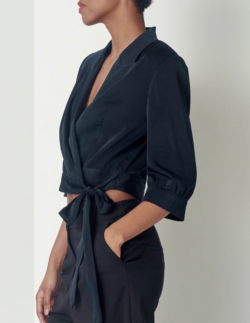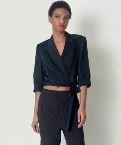 MARYLING PEAK-LAPEL WRAP TOP BLUE | Womens JACKET & COAT