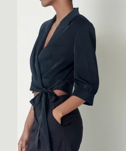 Be the first to review “MARYLING PEAK-LAPEL WRAP TOP BLUE | Womens JACKET & COAT” Cancel reply